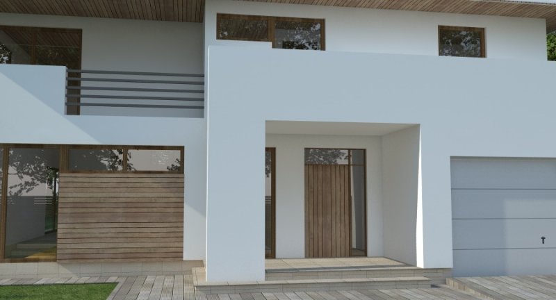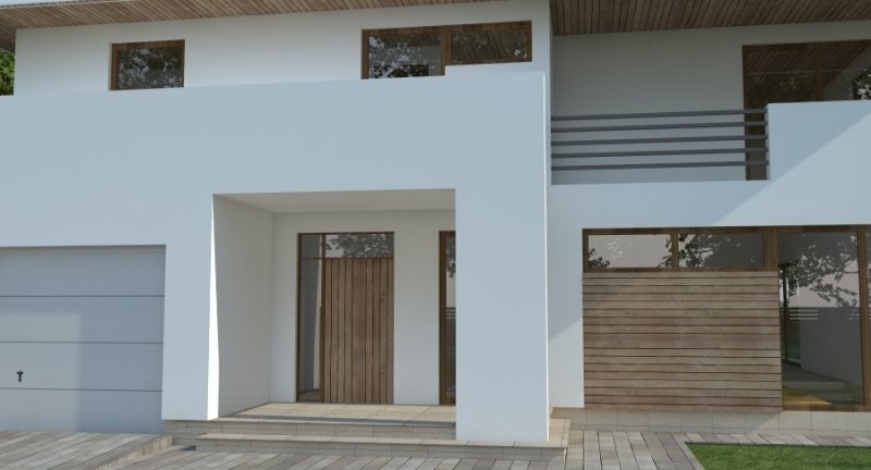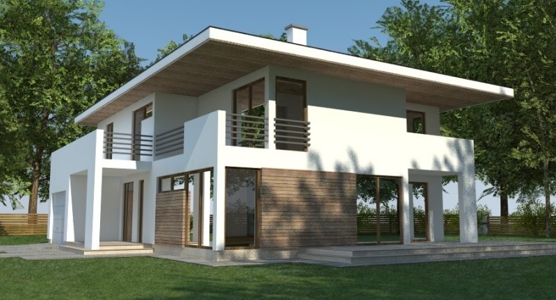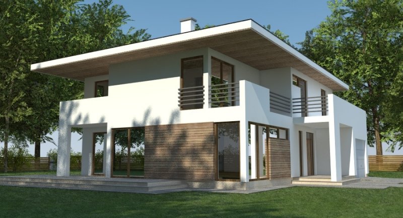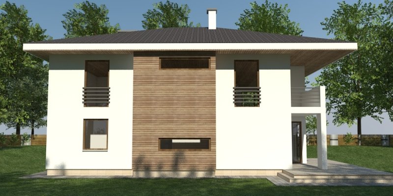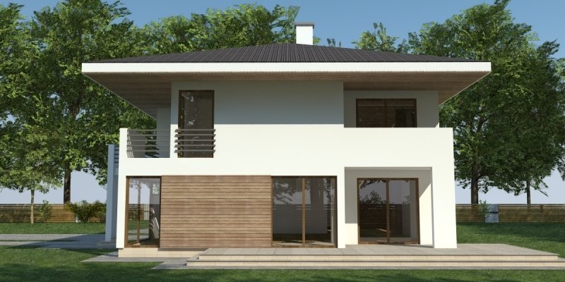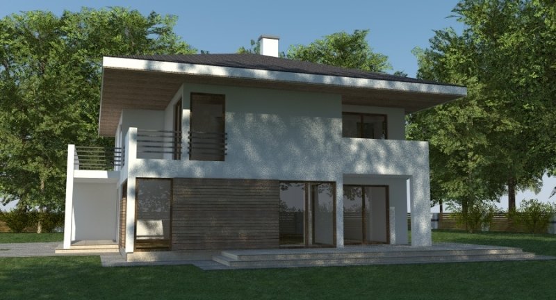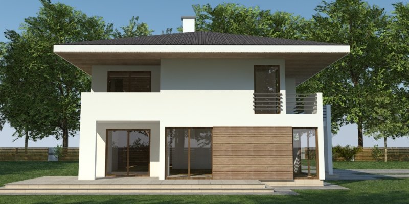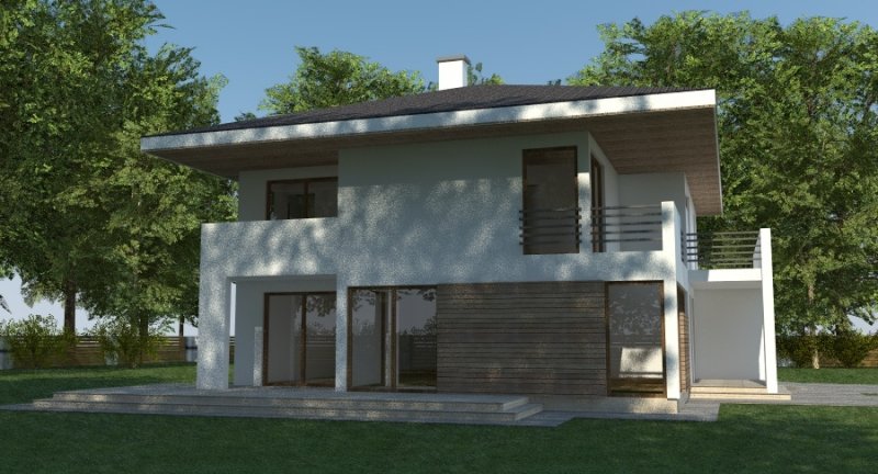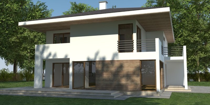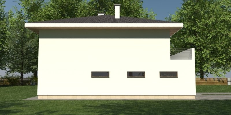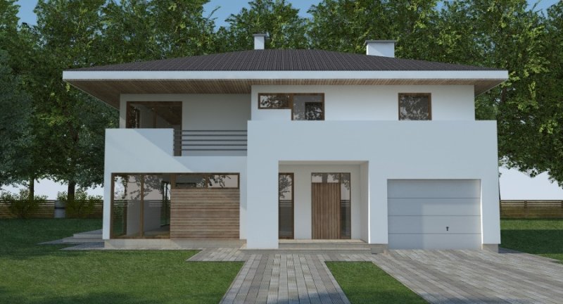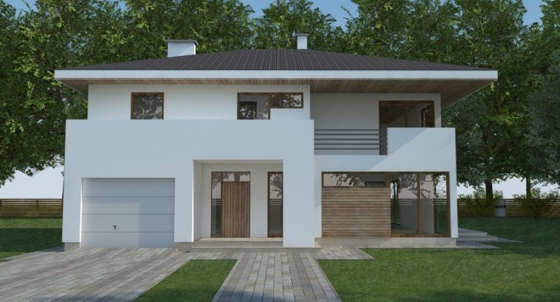 Projekt willi miejskiej o architekturze współczesnej. Parter domu tworzy otwartą przestrzeń, na którą składa się duży salon i kuchnia z jadalnią. Kuchnia w stylu nowoczesnym z miejscem na wolnostojącą "wyspę". Z jadalni jest wyjście na zadaszony taras. Piętro domu ma charakter strefy nocnej, w skład której wchodzą trzy sypialnie oraz pomieszczenia sanitarne. Dom posiada wbudowany garaż na jeden samochód osobowy. Projekt z garażem dwustanowiskowym jest dostępny pod symbolem AN 003.
