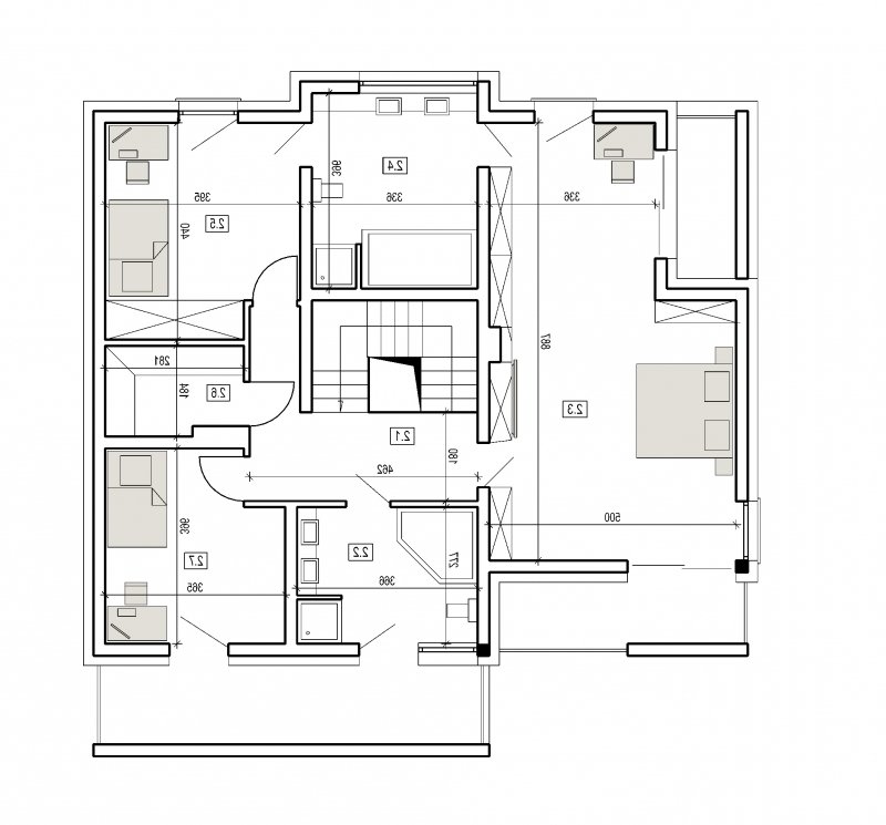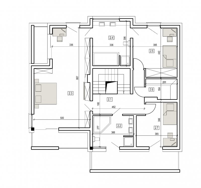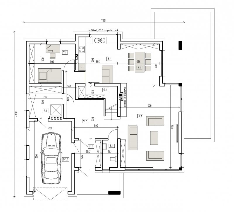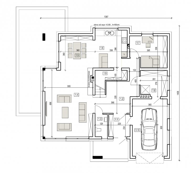 Projekt w tej wersji posiada instalację wentylacji z odzyskiem ciepła oraz zmodyfikowane grubości izolacji fundamentów, podłóg, ścian, stropów i dachu.