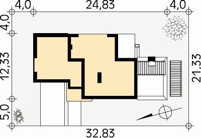 Ściany: 3-warstwowe - pustak ceramiczny, Stropy: gęstożebrowe TERIVA, Dach: dach płaski (spadek około 2-3%)