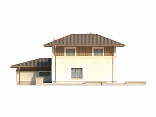 Dom jednorodzinny, dwukondygnacyjny z garażem dwustanowiskowym, niepodpiwniczony. Na parterze zaprojektowano obszerną przestrzeń łączącą w sobie kuchnię, jadalnię i pokój dzienny oraz dodatkowy pokój. Na poddaszu zaprojektowano trzy sypialnie i dwie łazienki. Dwie pełne kondygnacje dają możliwość łatwej aranżacji pomieszczeń także na piętrze.