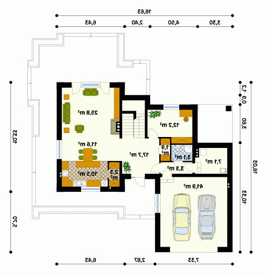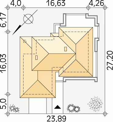 - Min. wymiary działki 24.89x27.20 m