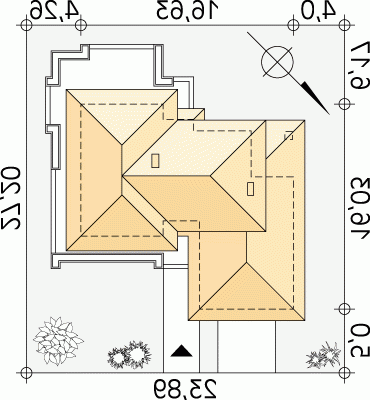- Kąt nachylenia dachu 21.00°