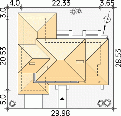 - Min. wymiary działki 29.98x28.53 m