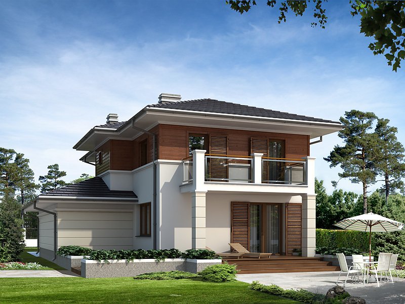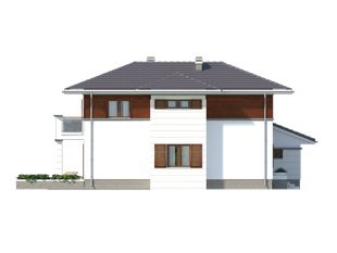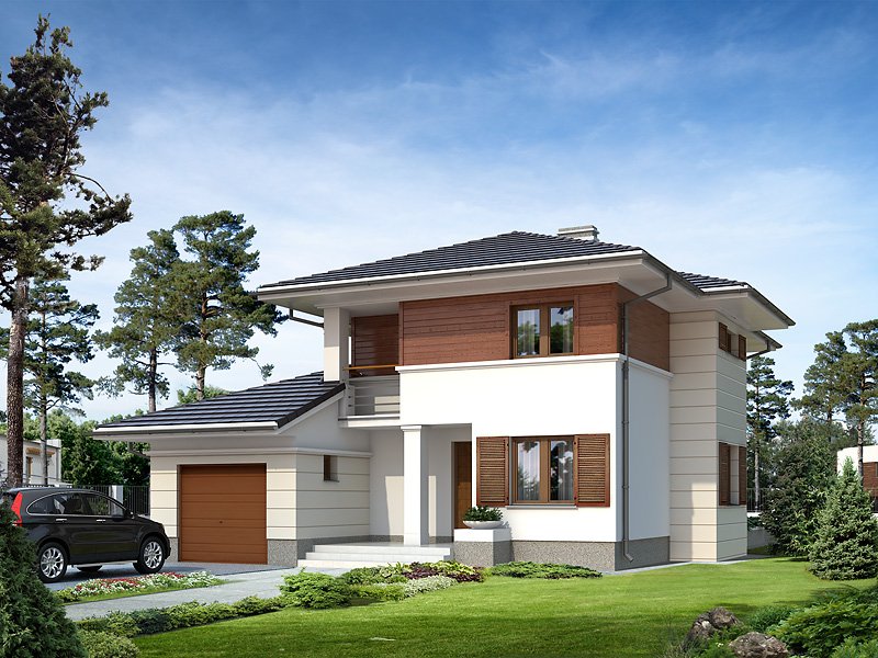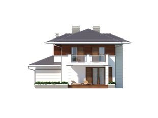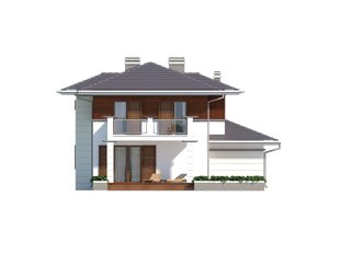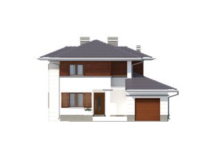 Dom jednorodzinny, dwukondygnacyjny z garażem, niepodpiwniczony. Na parterze zaprojektowano jednoprzestrzenną część dzienną łączącą kuchnię, jadalnię i pokój dzienny oraz dodatkowy pokój. Na piętrze znajdują się trzy sypialnie z wyjściami na balkony, duża łazienka i garderoba. Dwie pełne kondygnacje dają możliwość łatwej aranżacji pomieszczeń także na piętrze.