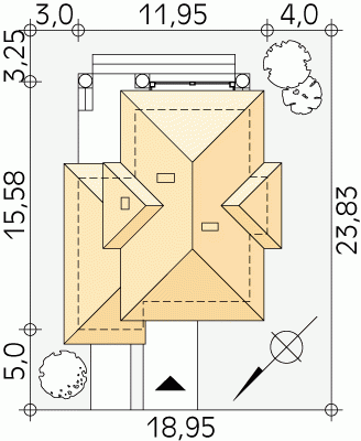 - Min. wymiary działki 18.95x23.83 m