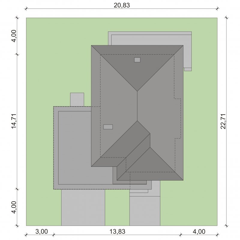 Konstrukcję dachu zamiast tradycyjnej więźby stanowią wiązary dachowe. Są to prefabrykowane elementy drewniane o wysokiej jakości, których zastosowanie pozwala na usunięcie niektórych ścian konstrukcyjnych, co prócz zwiększenie możliwości aranżacji wnętrz pomniejsza koszt budowy domu.