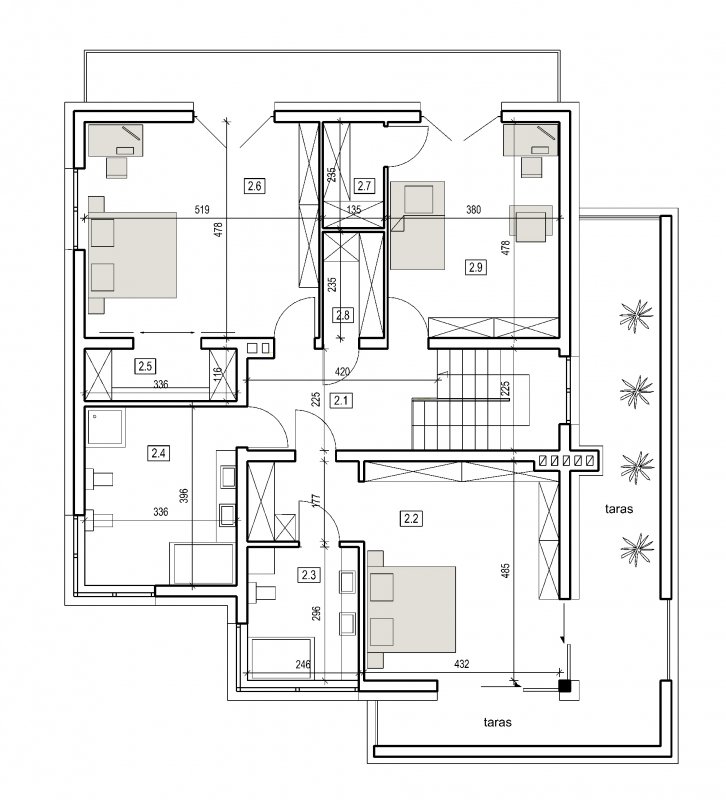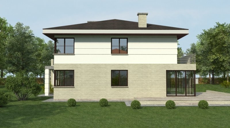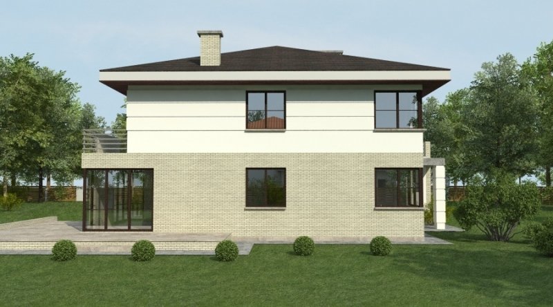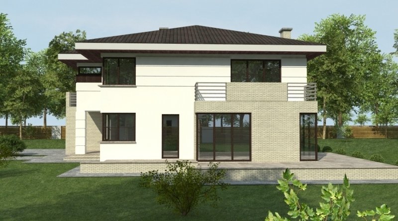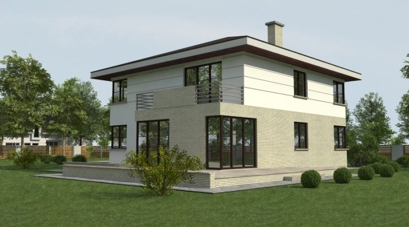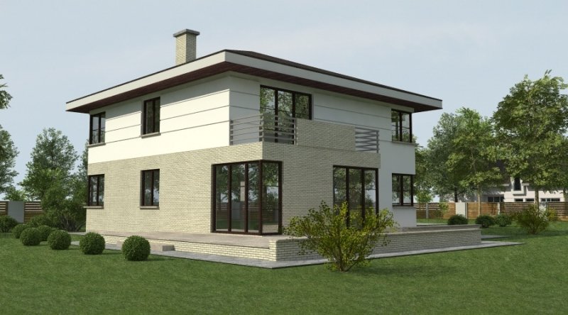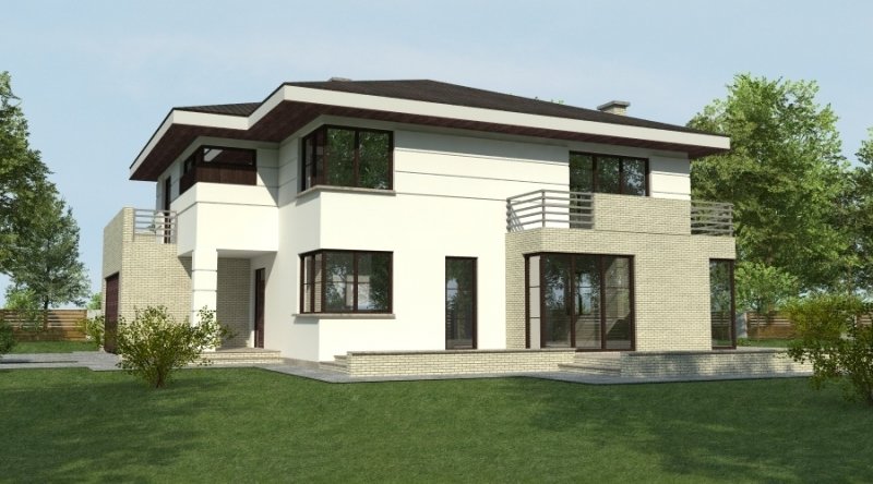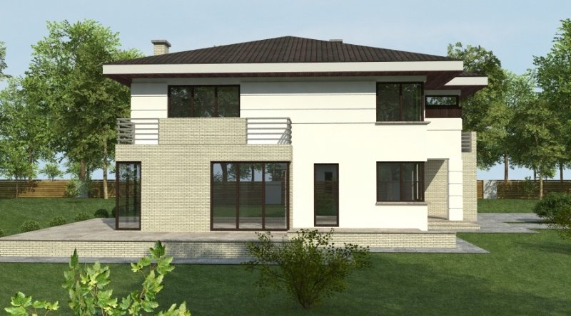 Projekt domu podmiejskiego o architekturze współczesnej. Parter domu tworzy otwartą przestrzeń, na którą składa się salon, kuchnia z jadalnią oraz ażurowa klatka schodowa. Kuchnia możliwa do wykonania w stylu nowoczesnym z miejscem na wolnostojącą "wyspę". Piętro domu ma charakter strefy nocnej, w skład której wchodzą 4 sypialnie z garderobami oraz pomieszczeniami sanitarnymi. W bryle budynku znajduje się wbudowany garaż 2-stanowiskowy.