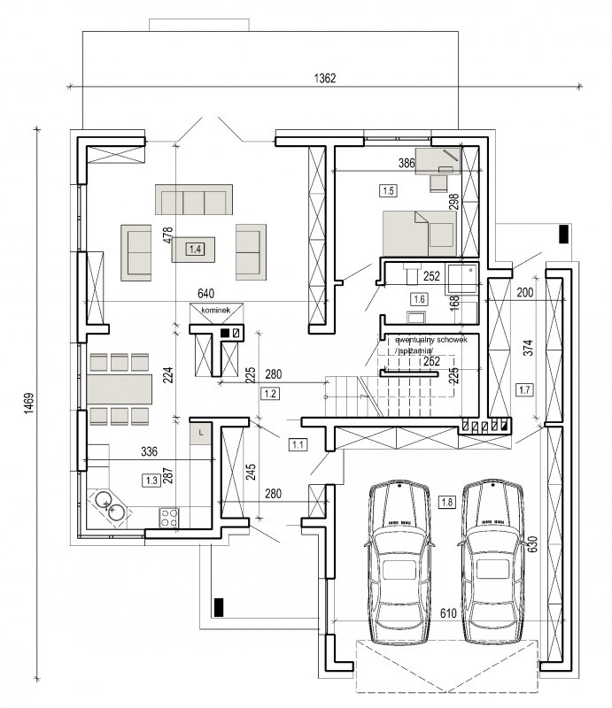 projekt w tej wersji posiada instalację wentylacji z odzyskiem ciepła oraz zmodyfikowane grubości izolacji fundamentów, podłóg, ścian, stropów i dachu.