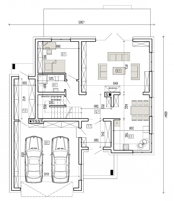 projekt w tej wersji posiada instalację wentylacji z odzyskiem ciepła oraz zmodyfikowane grubości izolacji fundamentów,podłóg ,ścian , stropów i dachu.