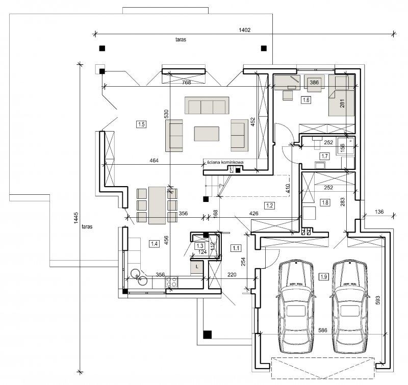 projekt w tej wersji posiada instalację wentylacji z odzyskiem ciepła oraz zmodyfikowane grubości izolacji fundamentów,podłóg ,ścian ,stropów i dachu.