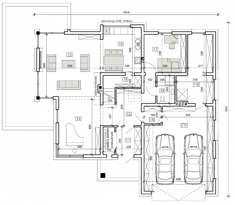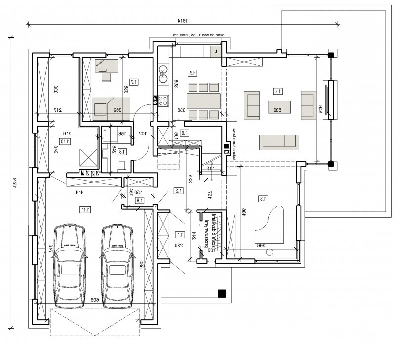 projekt w tej wersji posiada instalację wentylacji z odzyskiem ciepła oraz zmodyfikowane grubości izolacji fundamentów,podłóg,ścian, stropów i dachu.