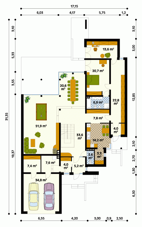 - Garaż 34.80 m²
