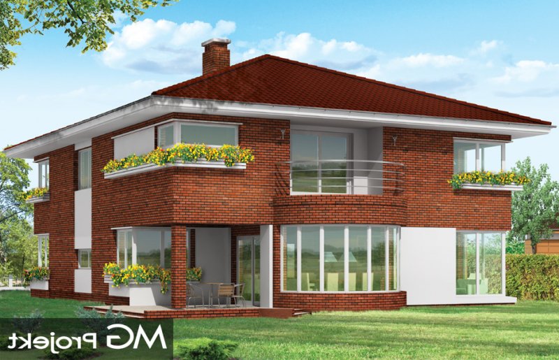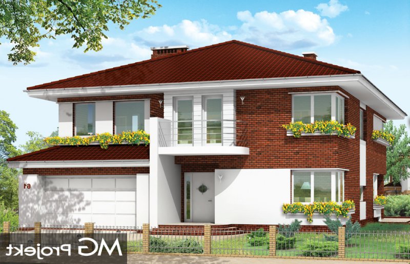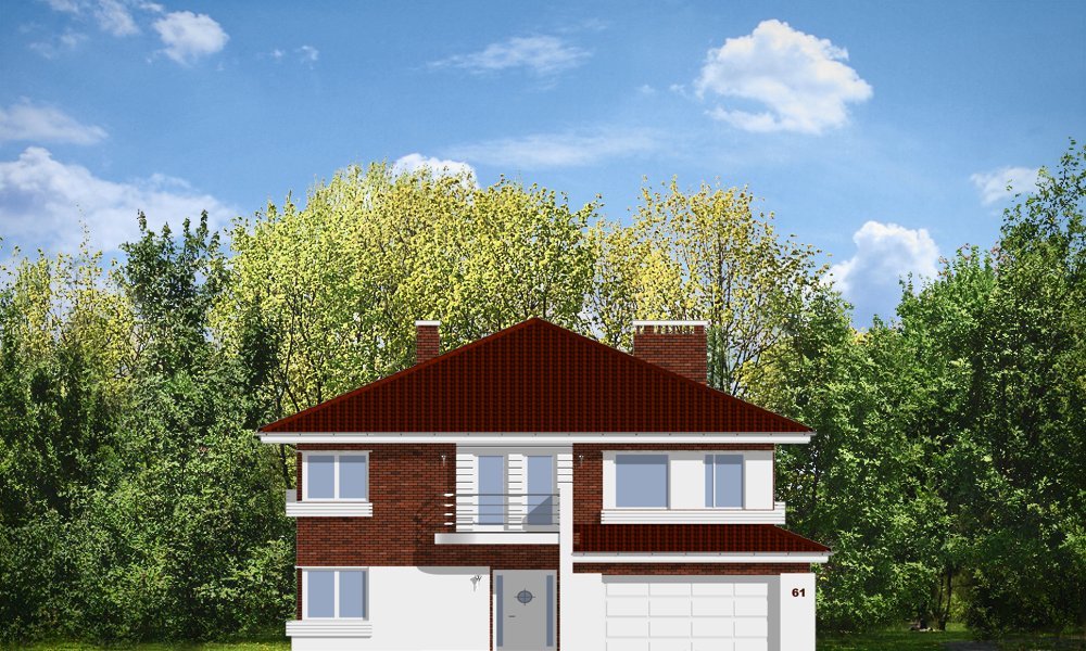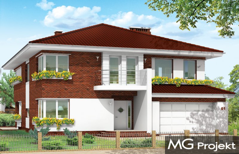 Gabriela 3 to prestiżowy dom o jednopiętrowej bryle przekryty czterospadowym dachem, przeznaczony dla 4-6cio osobowej rodziny. Architektura domu nawiązuje do stylu modernistycznego, we współczesnym ujęciu. Elementy, takie jak narożne okna, balkony z zaokrąglonymi balustradami, łukowy wykusz jadalni, podział elewacji na poziome pasy tworzą ciekawą stylistycznie architekturę zewnętrzną budynku. Dla projektu przewidziano kilka różnych wariantów aranżacji elewacji. Wnętrze willi: na parterze przestrzeń dzienna składająca się z salonu, jadalni z pięknym łukowym wykuszem, przestronnego holu z wygodnymi schodami na piętro, obszernej kuchni z aneksem na szybkie posiłki. Z pokoju dziennego wychodzimy do podcienia i na taras. Na parterze zaprojektowano również gabinet, garaż i kotłownię. Na piętrze znajduje się apartament rodziców z łazienką, garderobą i tarasem na ogród, trzy sypialnie dzieci, z łazienką, oraz pralnią i pokój sportowy. W domku zaprojektowano również częściowe podpiwniczenie - piwnica dostępna z zewnątrz domu, schodkami z ogrodu. Z piwnicy można zrezygnować jeśli warunku gruntowe nie pozwalają na jej budowę.