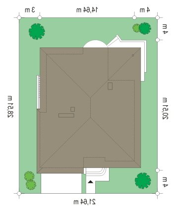 - Min. wymiary działki 21.64x21.64 m