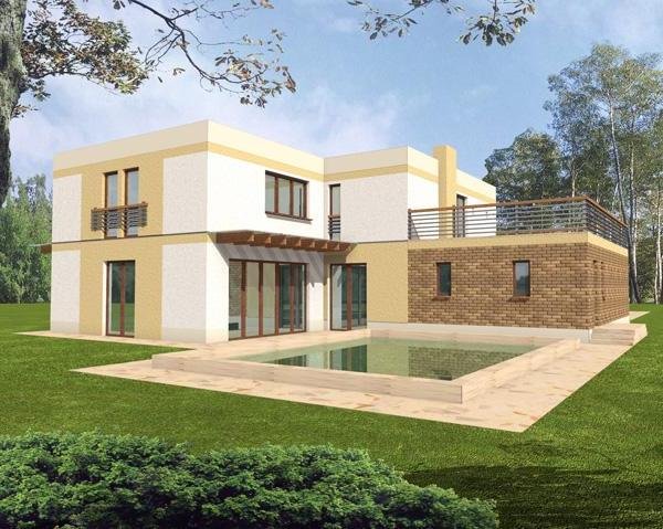 Jest to reprezentacyjny piętrowy dom o charakterystycznej, nowoczesnej architekturze wyróżniającej go z sąsiedniej zabudowy. Dom posiada wbudowany, duży dwustanowiskowy garaż i dodatkową wiatę.