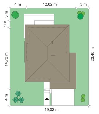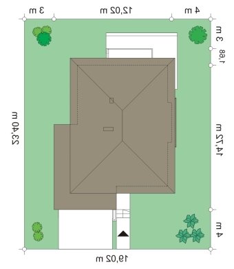 - Min. wymiary działki 19.02x19.02 m