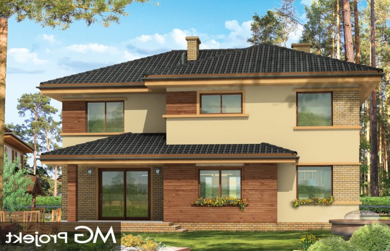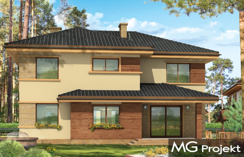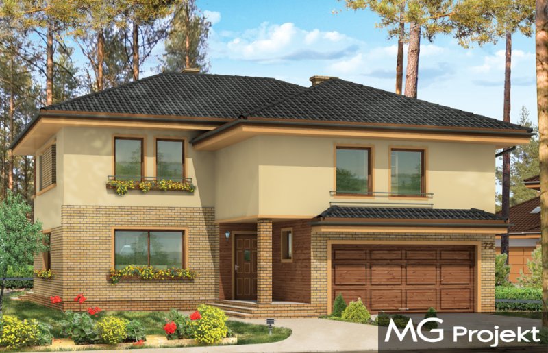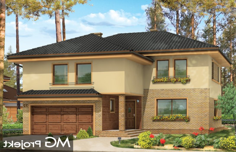 Koral jest piętrowym domem dla 4-6 osobowej rodziny. Architekturę budynku utrzymano w nowoczesnym stylu, łącząc prostotę z dopracowaniem detalu. Budynek składa się z dwóch brył - mieszkalnej i dobudowanego garażu. Od frontu zaplanowano podcień wejściowy, od strony tarasu- podcień ogrodowy. Narożne okna, gzymsy, wysunięte okapy tworzą wrażenie nowoczesności, poziome podziały elewacji obniżają wizualnie wysoką dwukondygnacyjną ścianę. Wnętrze zaprojektowano tak, że salon jest doświetlony z trzech stron, przez co nawet przy niekorzystnym usytuowaniu domu względem stron świata wnętrze będzie dobrze oświetlone. Także kuchnia, znajdująca się na parterze jest dobrze doświetlona przez okno, otwierające ją na ogród; jest ona oddzielona od salonu - zostawiono jedynie przejście. Na parterze zaplanowano dodatkowy pokój. Na piętrze natomiast mieszczą się cztery pokoje z dwiema łazienkami, garderobami i pralnią. Projekt dostępny jest również w odbiciu lustrzanym.
