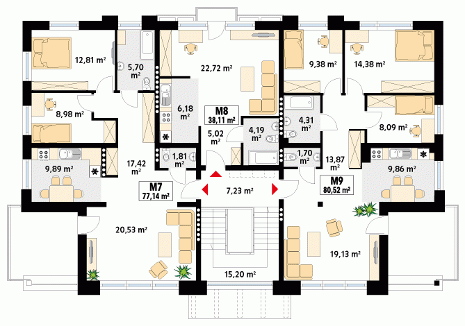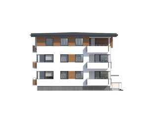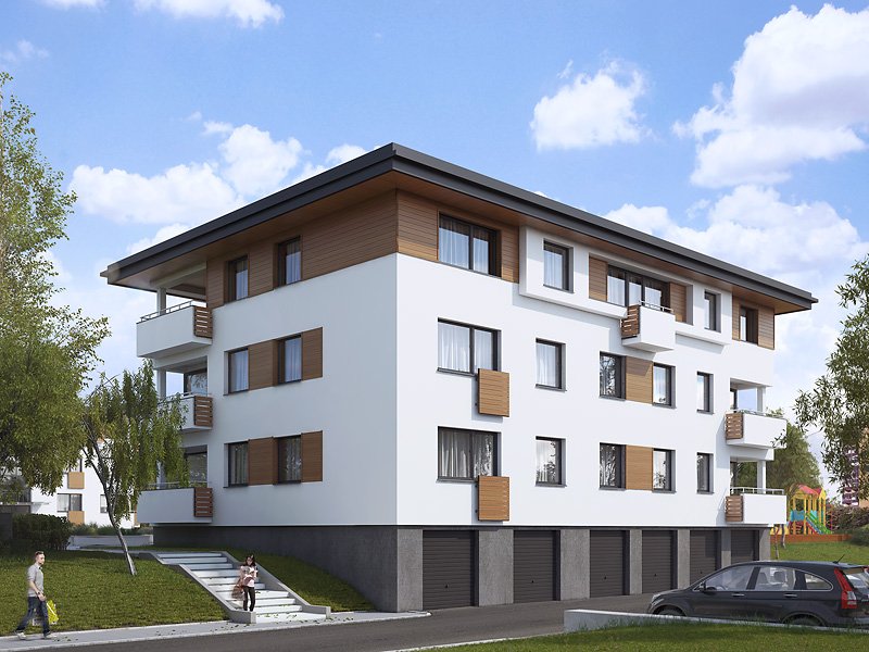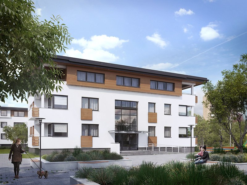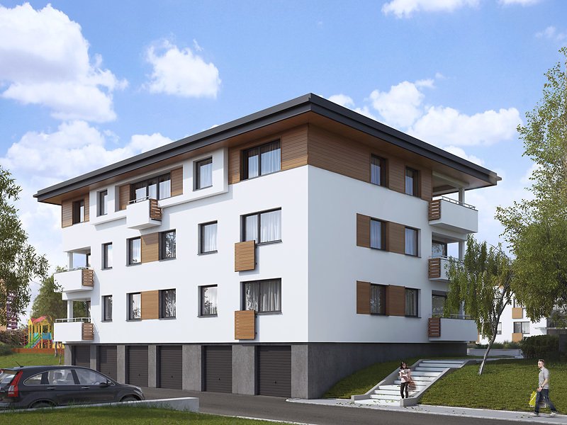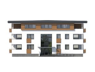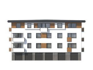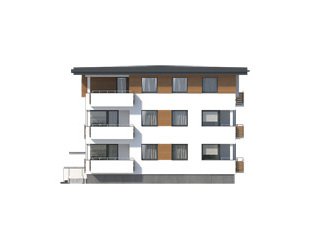 Dom mieszkalny wielorodzinny (9-mieszkaniowy), podpiwniczony. W piwnicy zaprojektowano 6 stanowisk garażowych, komórki lokatorskie, pomieszczenie techniczne. Na trzech kondygnacjach mieszkaniowych zaprojektowano 9 mieszkań. Dom o nowoczesnej, zwartej bryle.