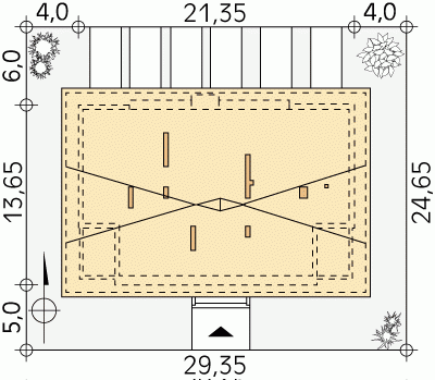 - Min. wymiary działki 29.19x24.49 m