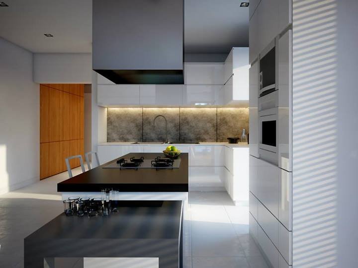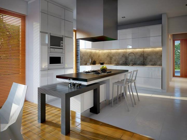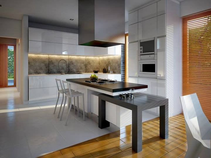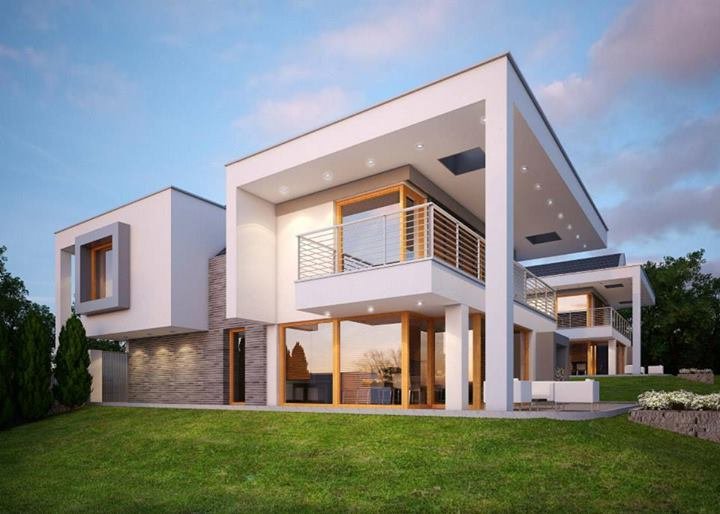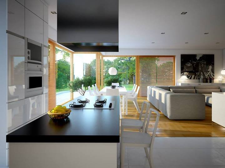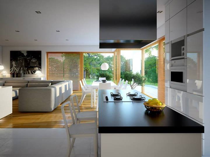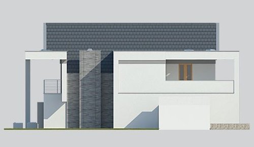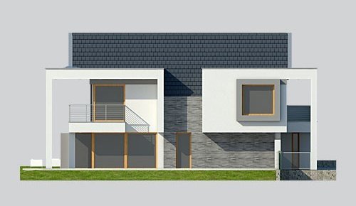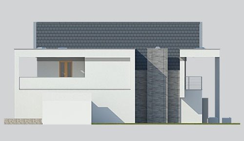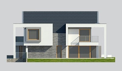 - Elewacje: wykończone tynkiem silikonowym, cegłą klinkierową Terca Stratus firmy Wienerberger, płyty kompozytowe 'Alucobond'