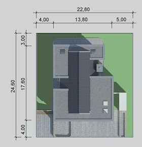- Min. wymiary działki 23.35x26.05 m