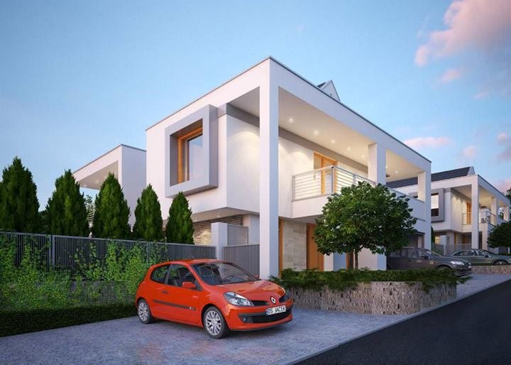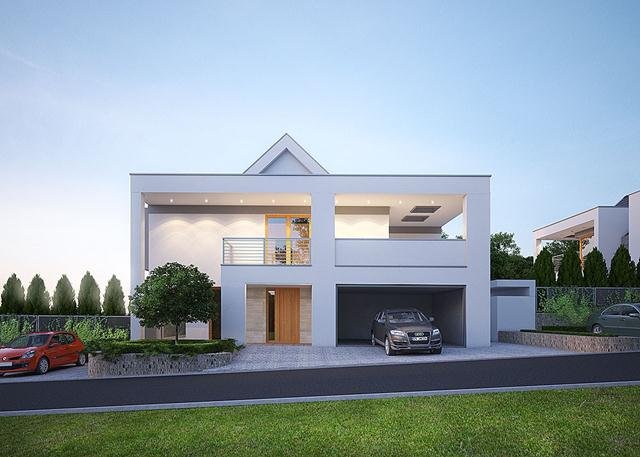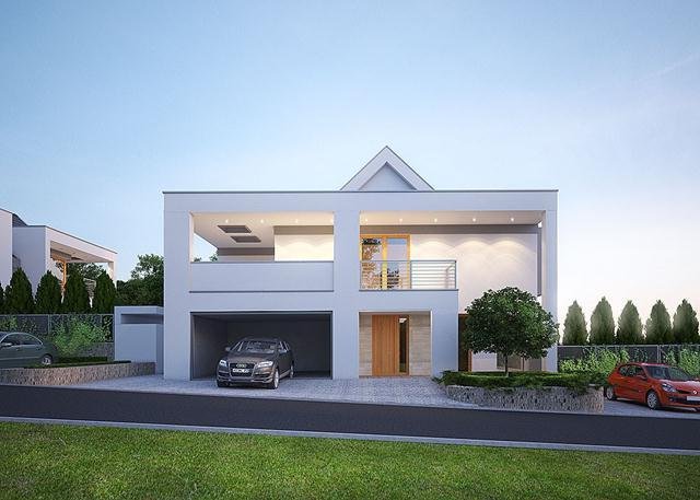 Nowoczesny, piętrowy dom jednorodzinny, z dwustanowiskowym garażem.