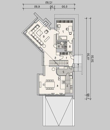 - Kąt nachylenia dachu 25.00°