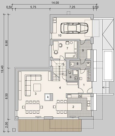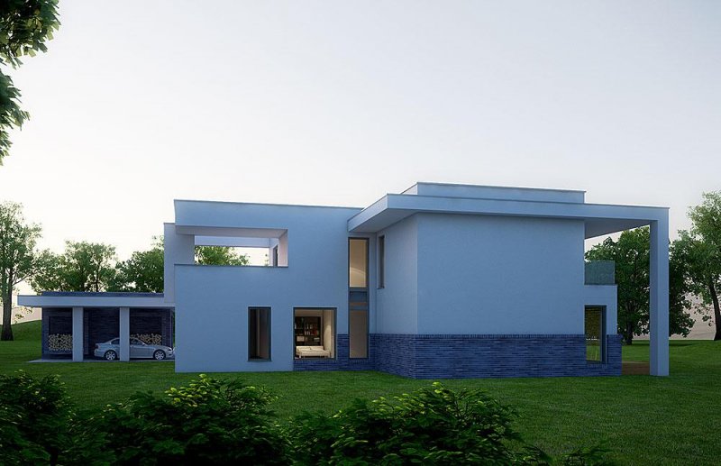 - Elewacje: wykończone tynkiem silikonowym, na fragmentach cegła klinkierowa Terca Stratus firmy Wienerberger