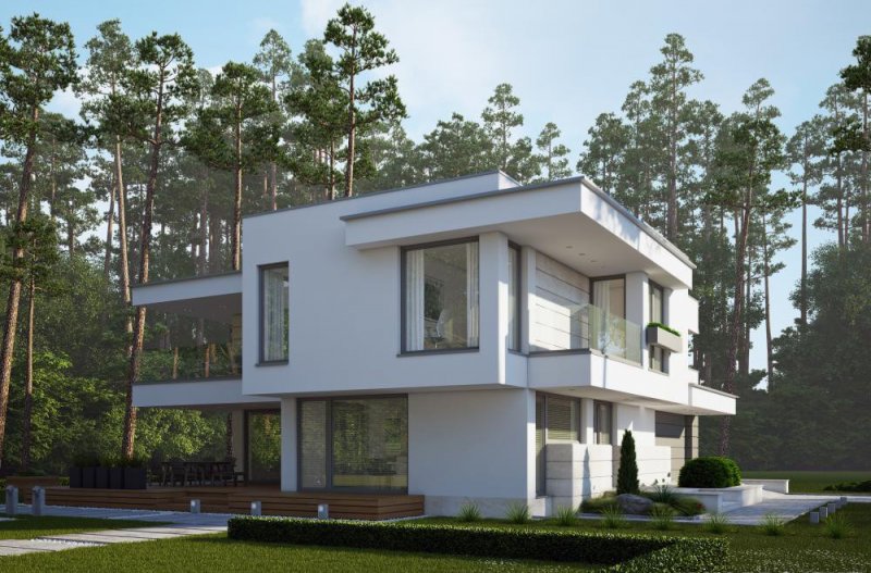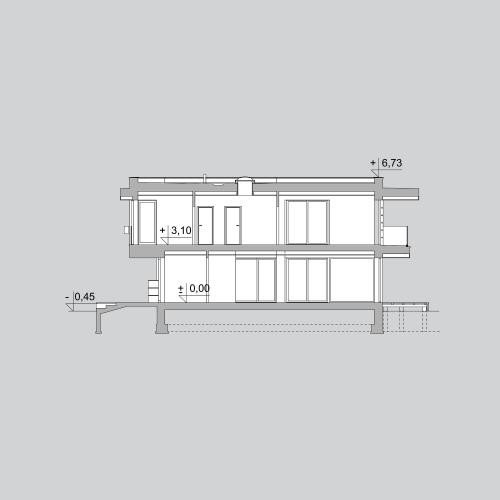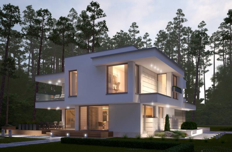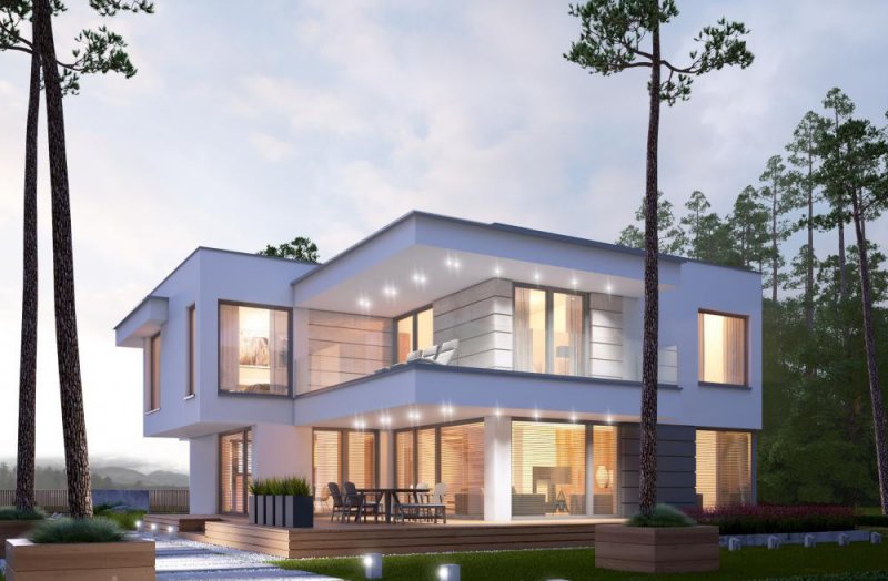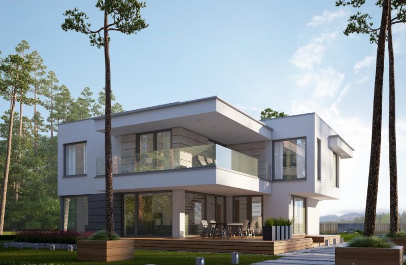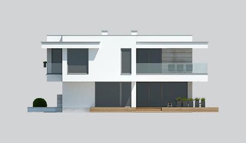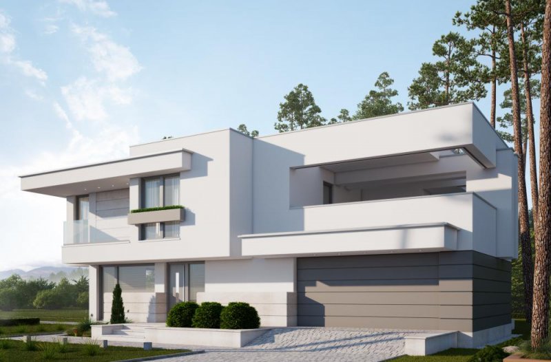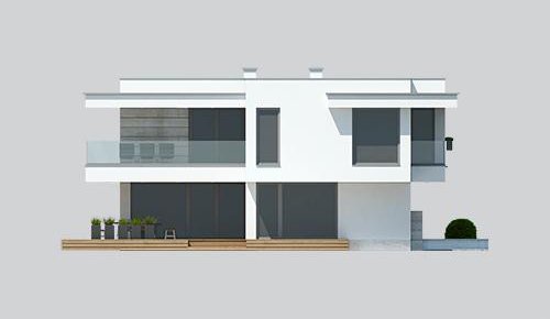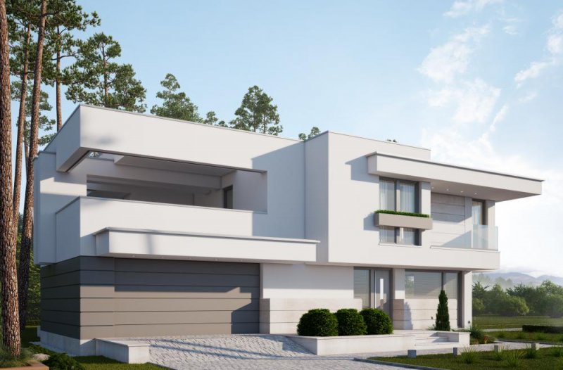 Nowoczesny, piętrowy dom z płaskim dachem i dwustanowiskowym garażem. Sprosta oczekiwaniom nawet najbardziej wymagających osób. Parter to dzienna strefa domu. Duże przeszklenia stanowią niewątpliwie wielki atut prezentowanego projektu. Zarówno z kuchni, salonu i jadalni prowadzą wyjścia na taras. Piętro to nocna strefa domu. Trzy sypialnie i garderoba stanowią idealną ilość pokoi dla rodziny z dwojgiem dzieci. Projekt domu LK&1263 skierowany jest dla osób lubiących elegancki, nowoczesny styl.