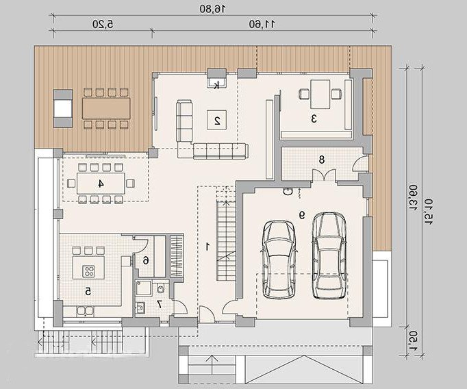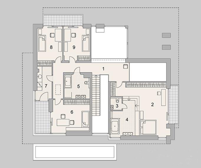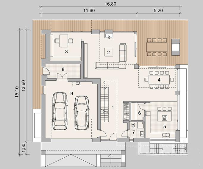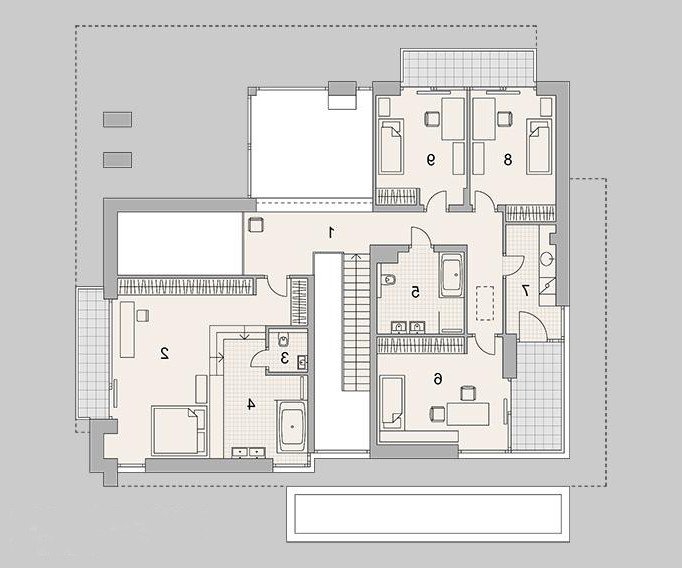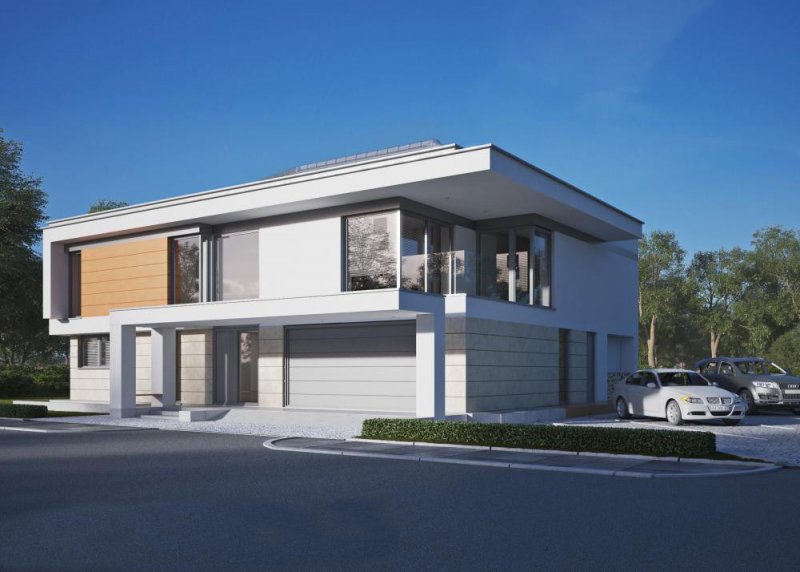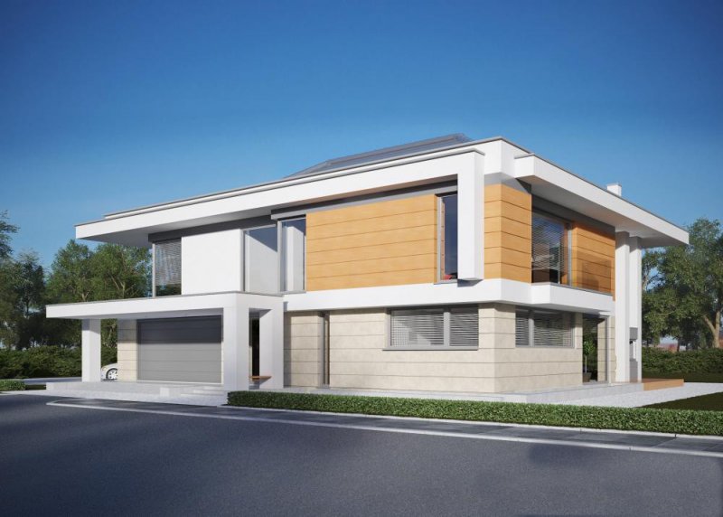Nowoczesny dom dla 6-8 osobowej rodziny. Złożony z piwnicy do zagospodarowania, parteru z garażem dwustanowiskowym, a także piętra.