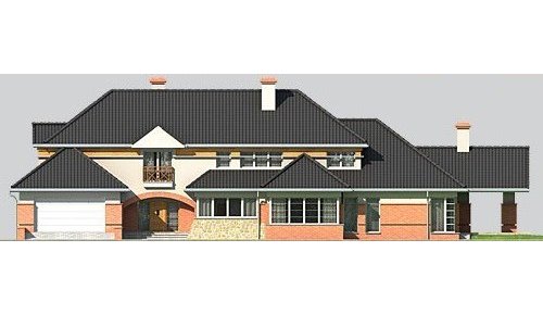 Dom jednorodzinny, piętrowy, z garażem dwustanowiskowym oraz basenem rekreacyjnym.