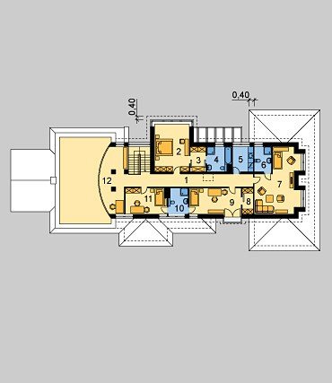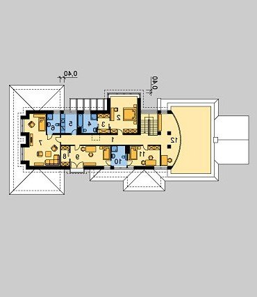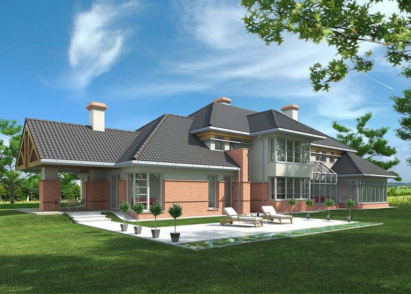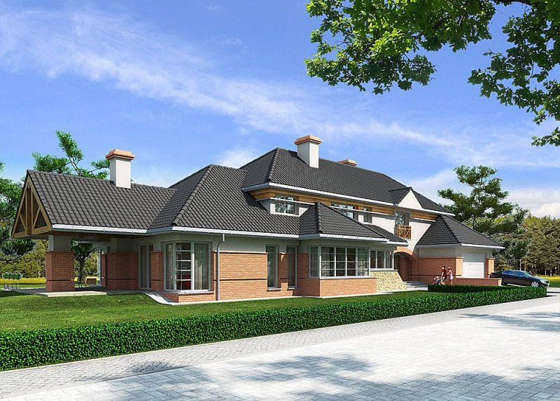 - Pokrycie dachu: dachówką ceramiczną oraz blachą tytanowo-cynkową