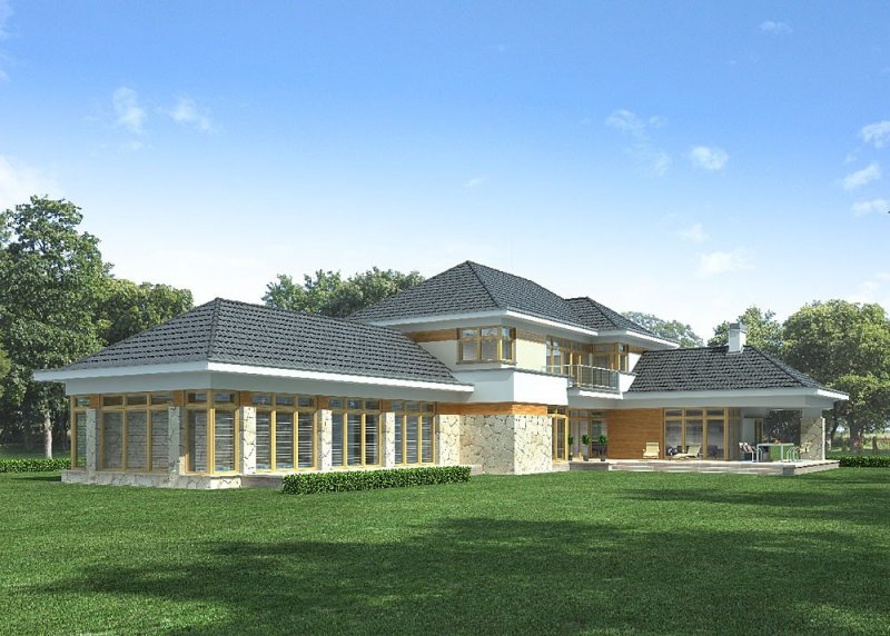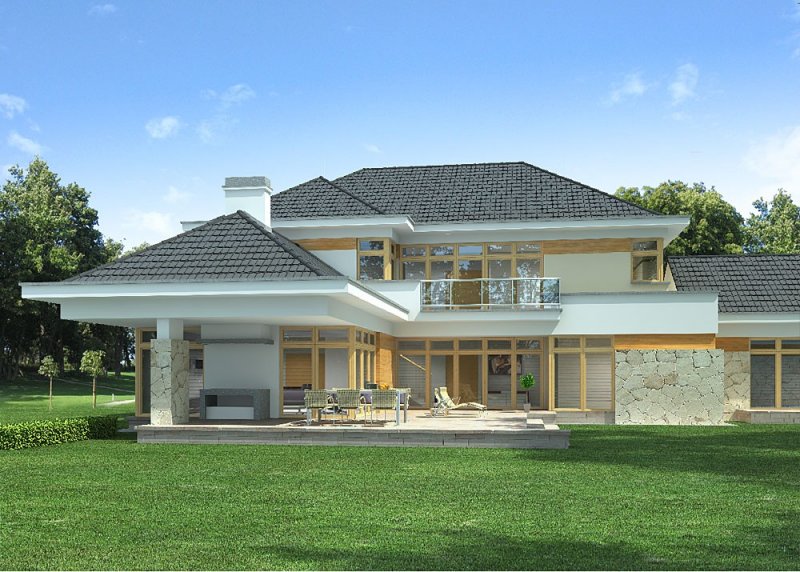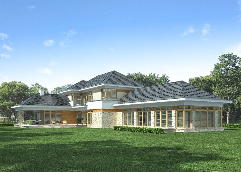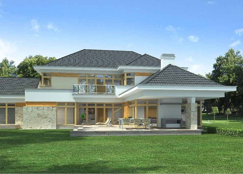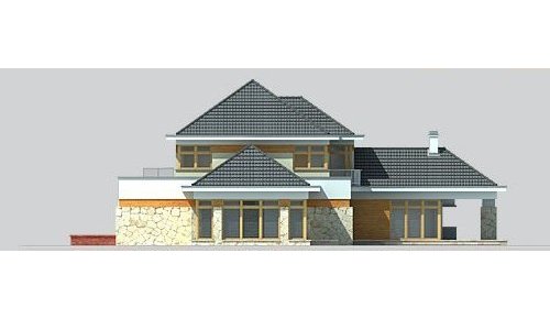 - Elewacje: wykończone tynkiem silikonowym,na fragmentach ścian deski elewacyjne oraz okładzina z kamienia naturalnego ciętego, cokół obłożony kamieniem naturalnym łupanym