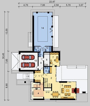 - Min. wymiary działki 30.10x38.95 m