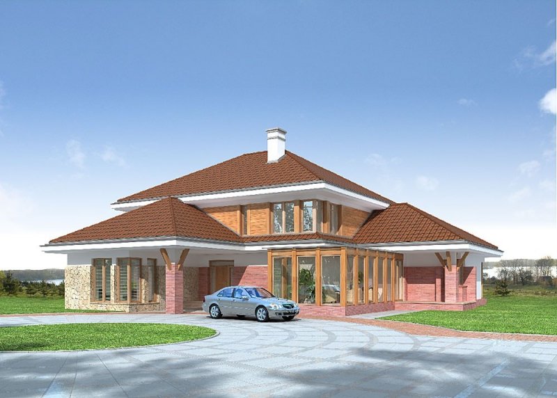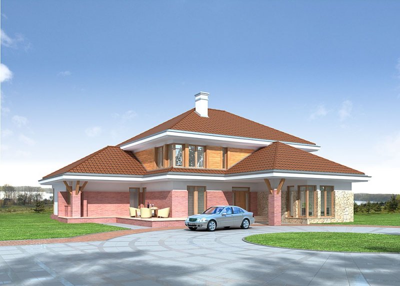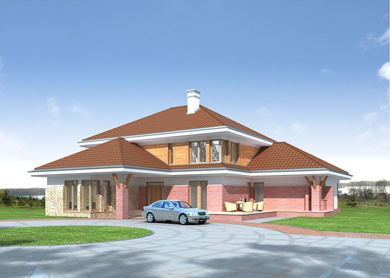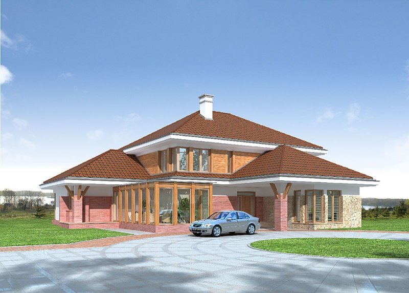 - Elewacje: wykończone cegłą klinkierową, tynkiem silikonowym, kamieniem naturalnym oraz drewnem
