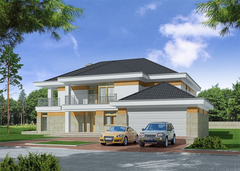 Dom jednorodzinny piętrowy, niepodpiwniczony, z garażem dwustanowiskowym.