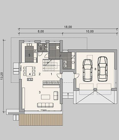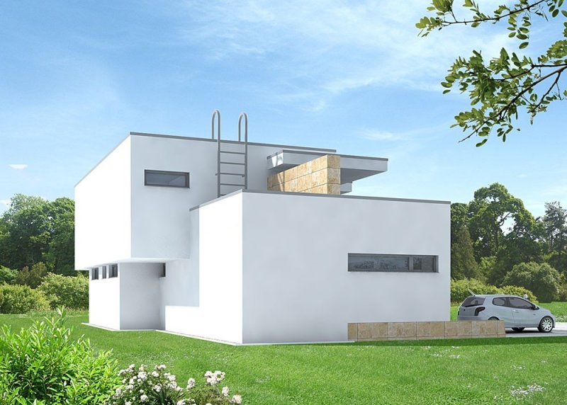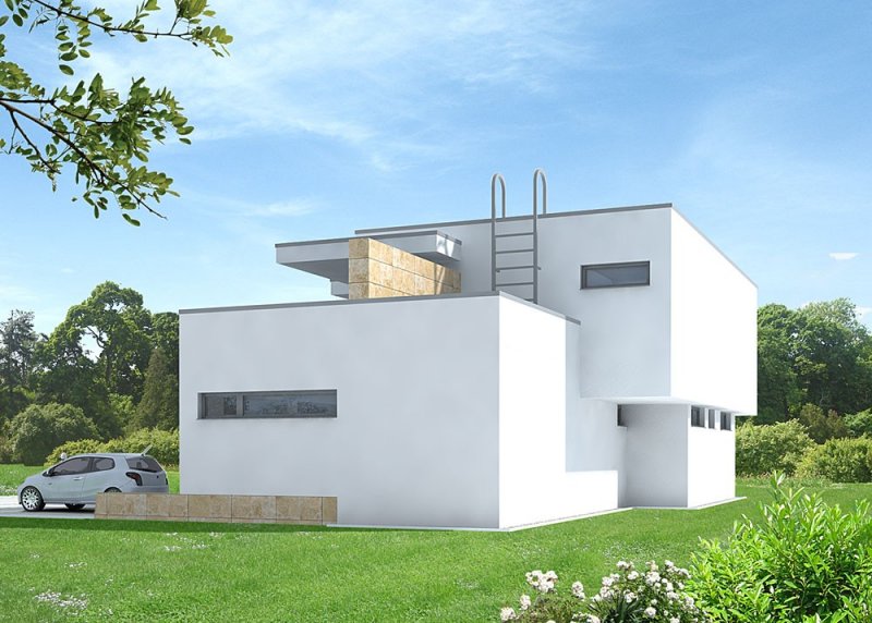 - Elewacje: tynk silikonowy, cokół: płyty kamienne naturalne