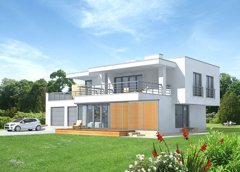 Dom jednorodzinny, piętrowy z garażem dwustanowiskowym.