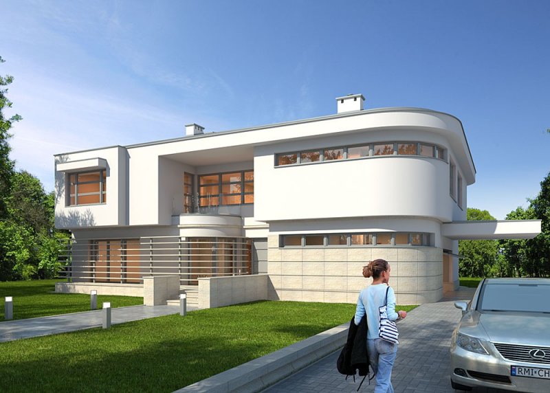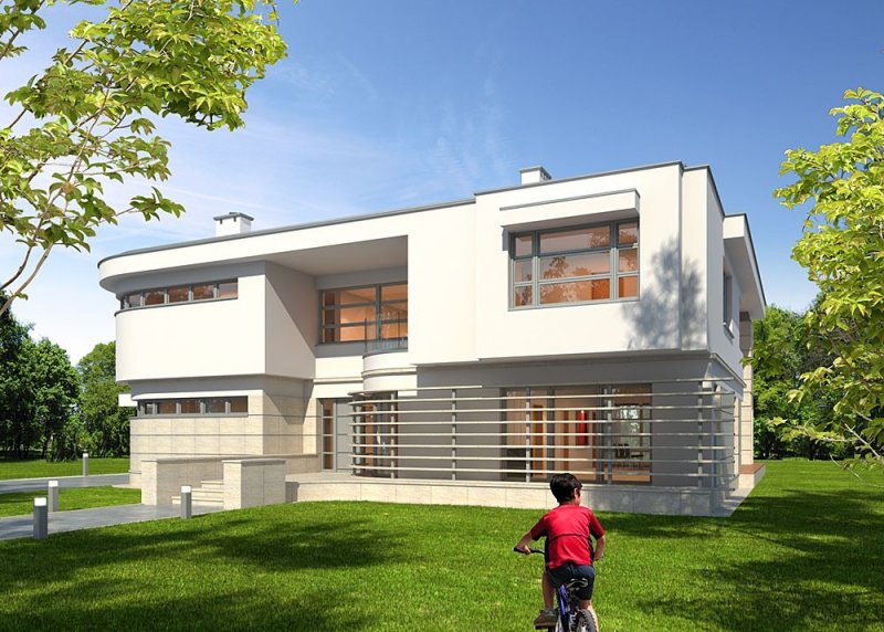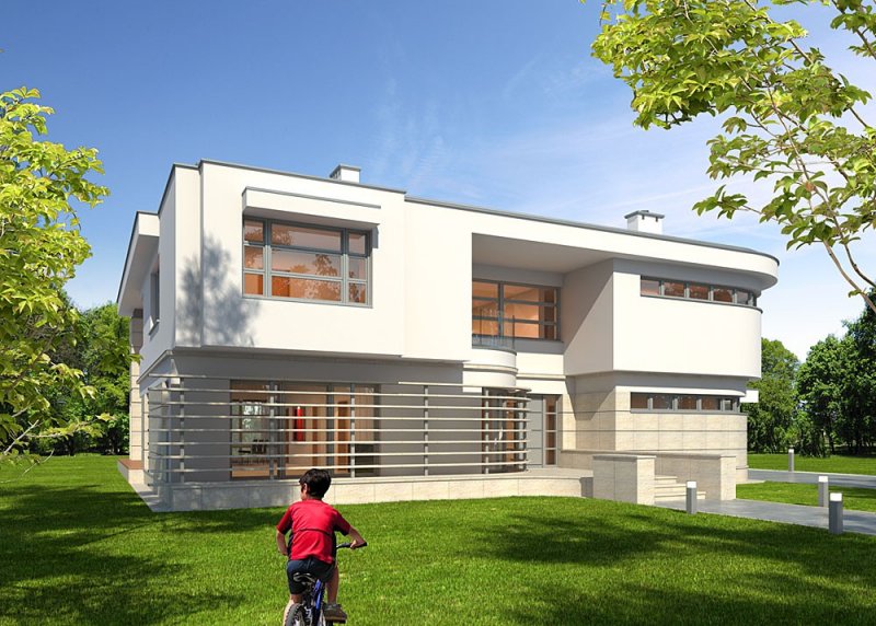 Nowoczesny, piętrowy dom jednorodzinny z dwustaniskowym garażem.