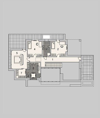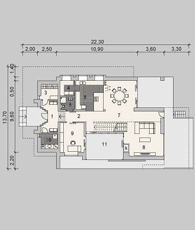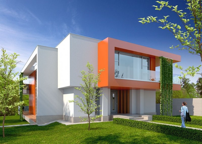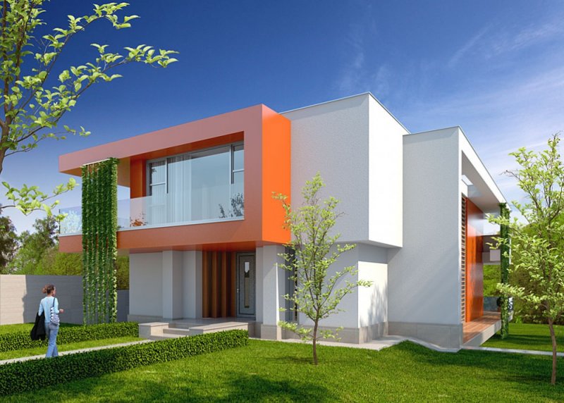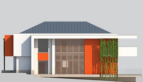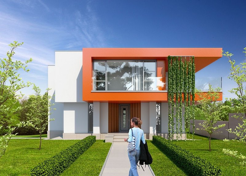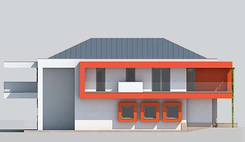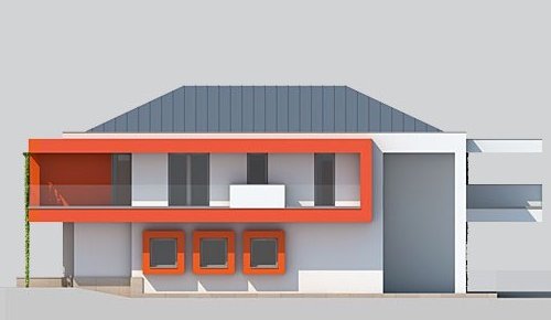 - Elewacje: wykończone tynkiem silikonowym, elewacje systemowe firmy Euronit, cokoły tarasów wykończone trawertynem