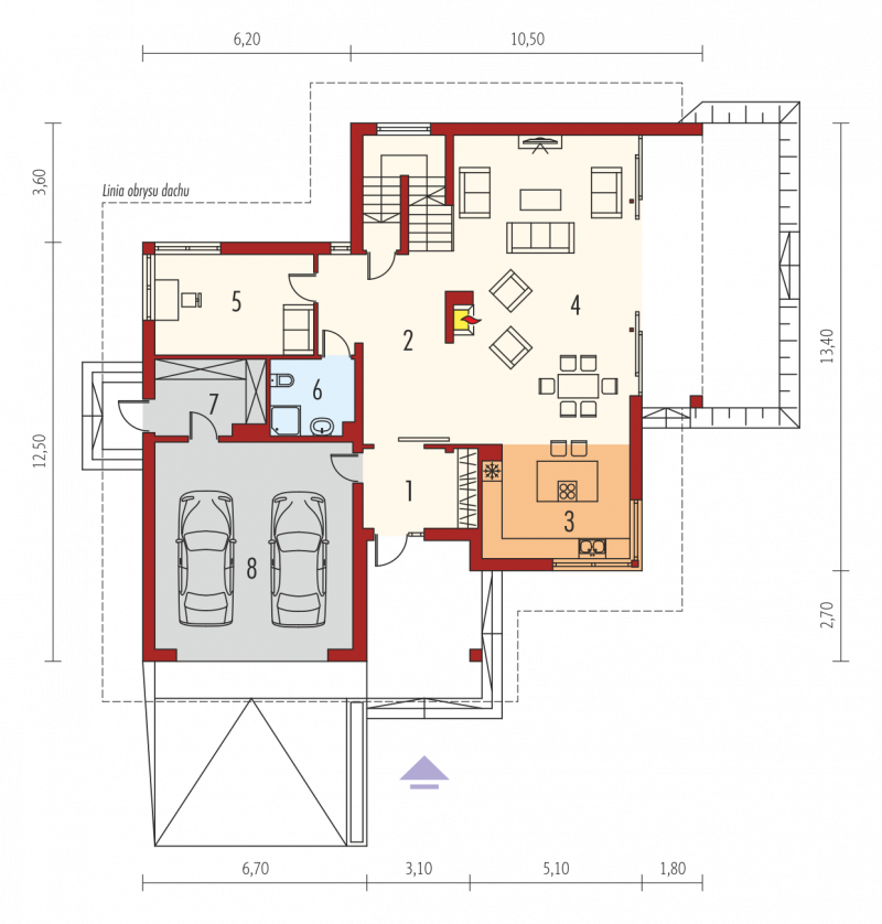 - Kąt nachylenia dachu 22.00°
