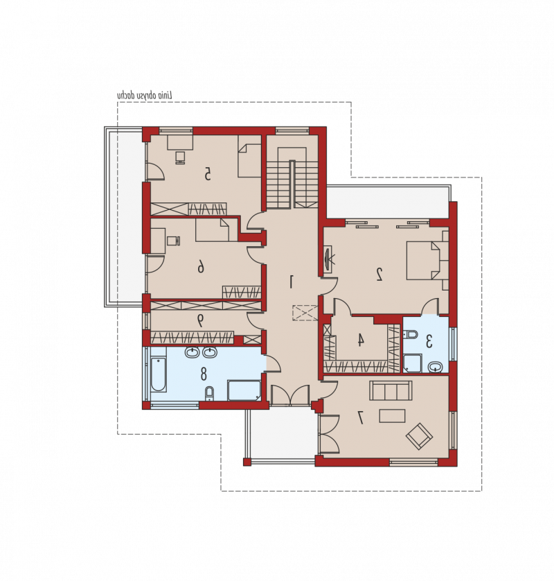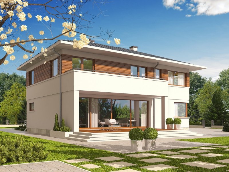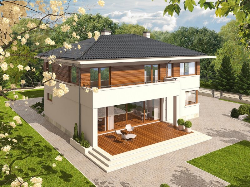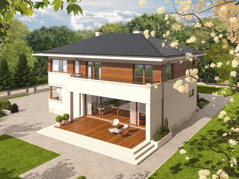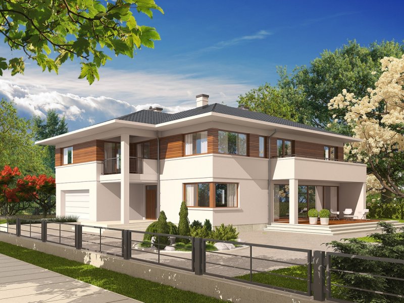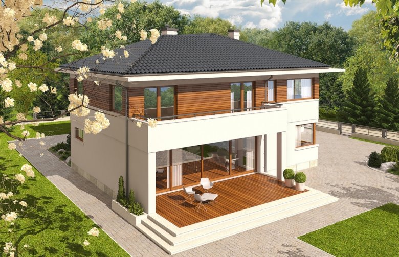 Dom piętrowy, podpiwniczony, z garażem dwustanowiskowym. Przeznaczony dla 4-5-osobowej rodziny. Na parterze zaprojektowano strefę dzienną: salon z kominkiem, jadalnię oraz kuchnię. Znalazł się tu także gabinet, łazienka i duże pomieszczenie gospodarcze. Strefę nocną zlokalizowano na poddaszu. Tworzą ją trzy wygodne sypialnie, w tym jedna z odrębną garderobą i łazienką. Dodatkowo, zaplanowano duży salon łazienkowy dostępny z korytarza, garderobę oraz pokój rekreacyjny. W projekcie przewidziano częściowe podpiwniczenie, w którym znalazło się duże pomieszczenia gospodarcze, spiżarnia oraz przestronna pralnia i kotłownia. Nati to zachwycająca rezydencja, zaprojektowana w duchu nowoczesności. Rozłożysta bryła budynku, ubrana w elegancką kompozycję elewacji oferuje imponującą przestrzeń możliwości. Wygodny układ funkcjonalny z czytelnie rozplanowanym podziałem na strefy sprawia, że domownicy mogą cieszyć się najwyższym komfortem użytkowym. Dopełnieniem strefy wypoczynkowej są balkony i tarasy – znakomite miejsce na relaks i zabawę w towarzystwie rodziny i przyjaciół. Nati to dom zaprojektowany z myślą o inwestorach, którzy cenią przestrzeń i szykowne piękno. Istnieje możliwość: - zbliźniaczenia - wykonania domu dwulokalowego