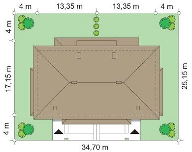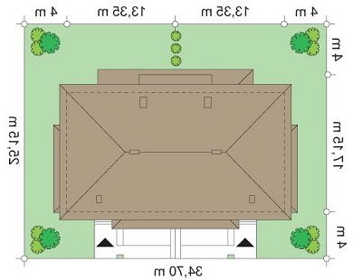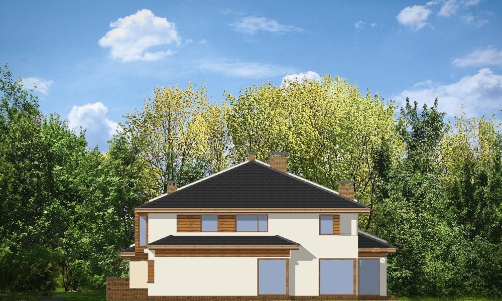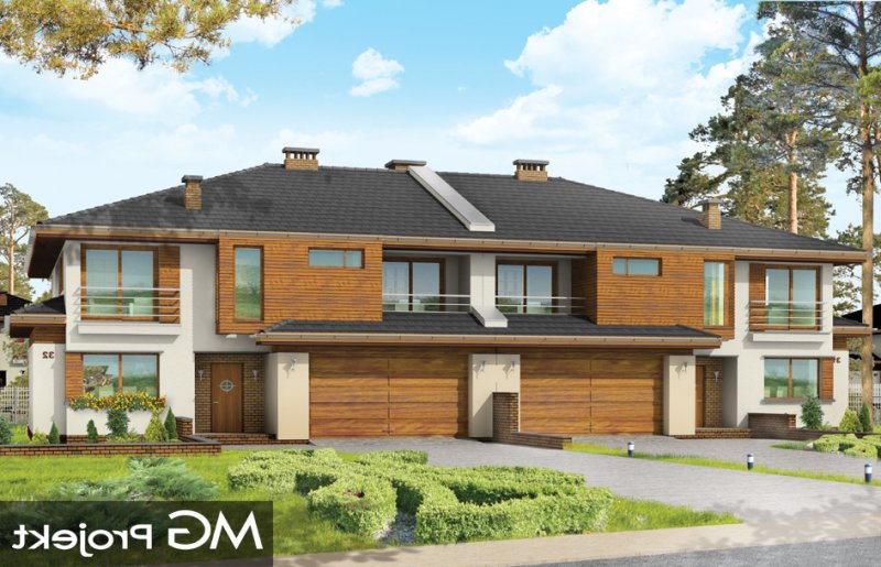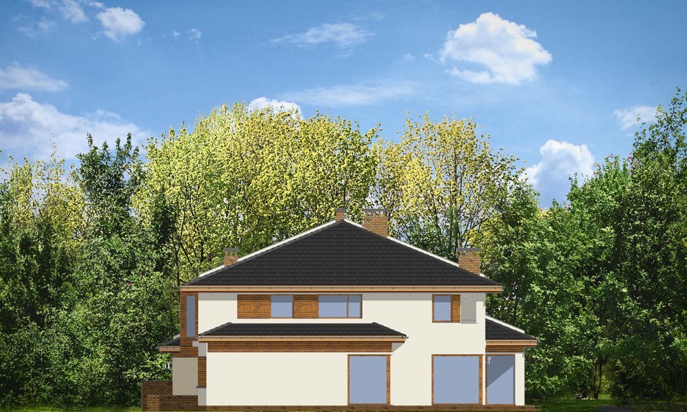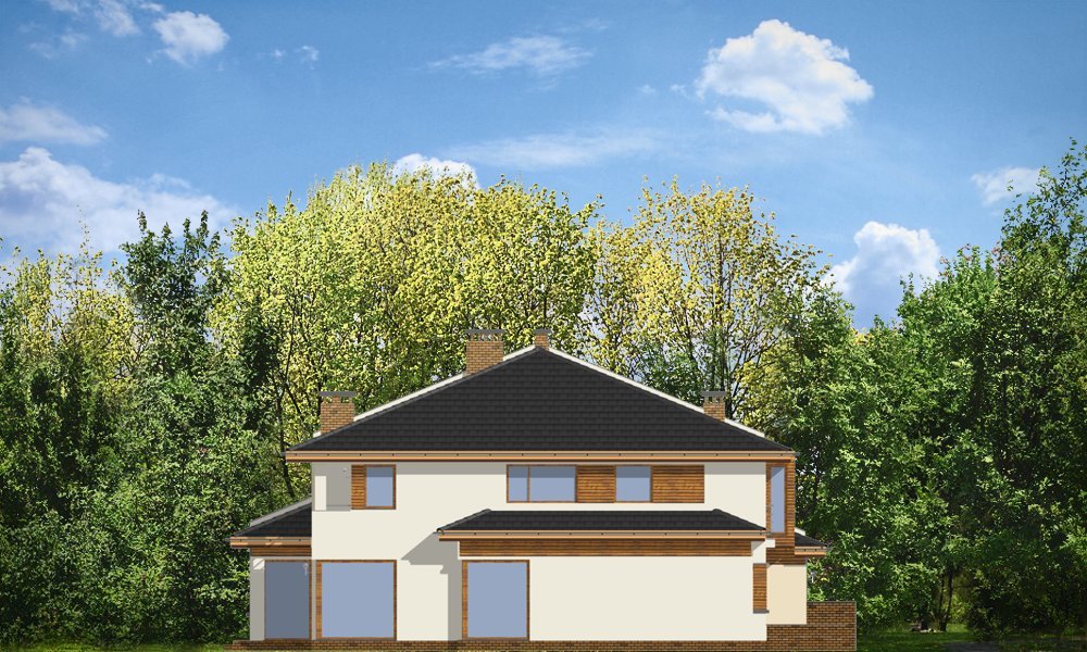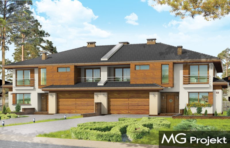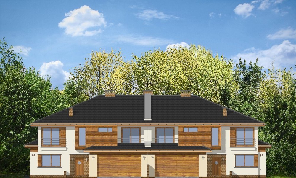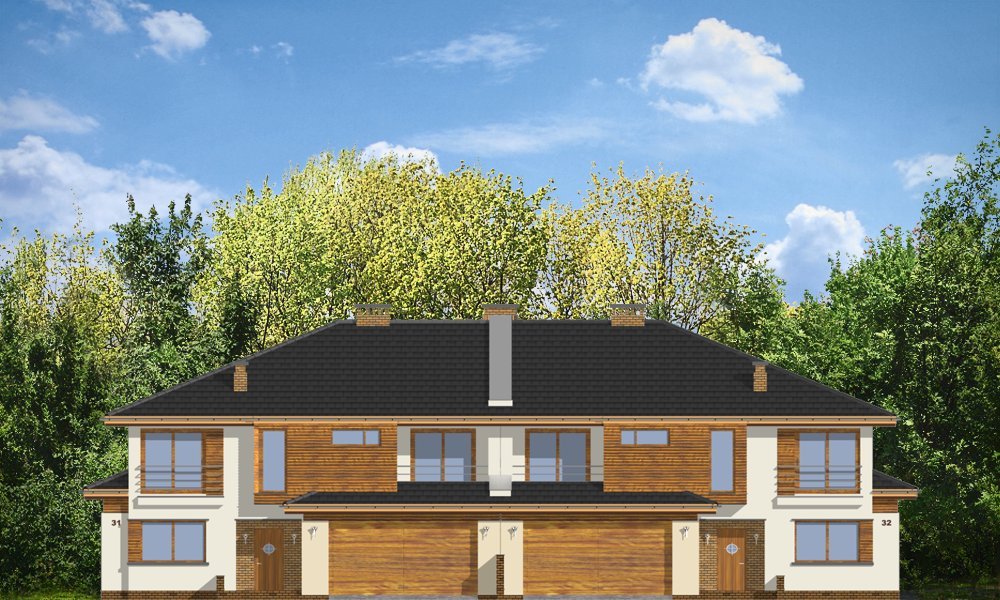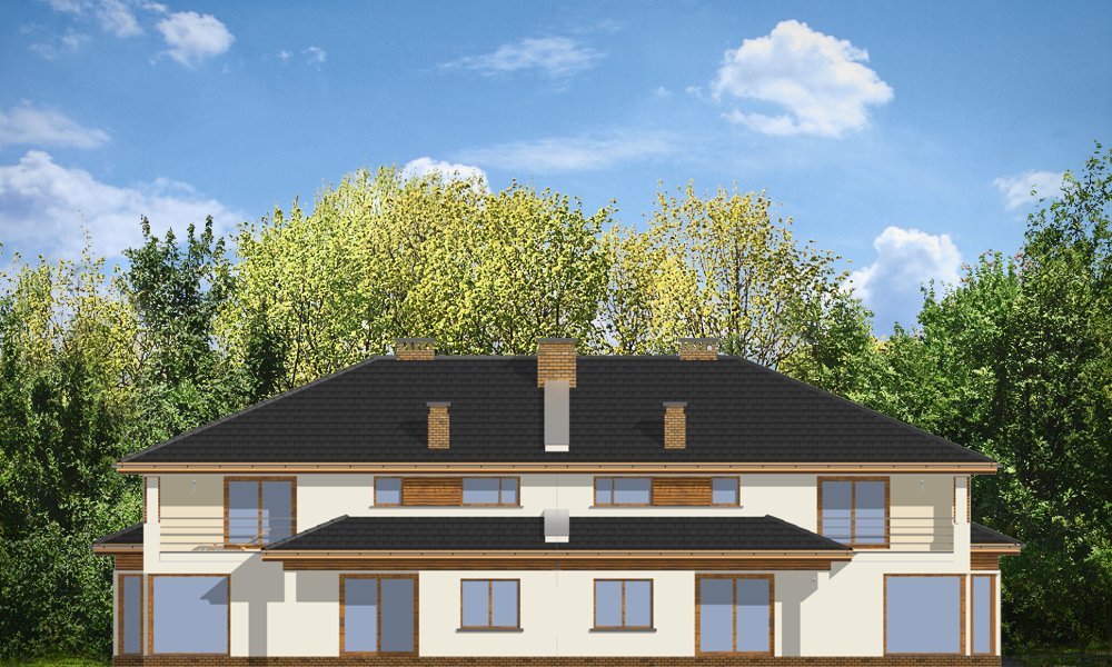 Neptun to duży, nowoczesny dom w zabudowie bliźniaczej. Każda połówka przewidziana została dla rodziny 4-6cio osobowej. Neptun jest piętrowym budynkiem, przekrytym dachem wielospadowym. Budynek zaprojektowano używając nowoczesnych form i detali, jednak całości nadano spokojny, stonowany charakter. Bryła domu jest bardzo reprezentacyjna, pasująca do willowego otoczenia. Funkcję budynku podzielono na część dzienną z zapleczem gospodarczo-garażowym na parterze i sypialnie na piętrze. Na parterze zaprojektowano przestrzeń dzienną składającą się z salonu, jadalni i holu. W salonie na uwagę zasługują wbudowany we wnękę kominek, duże atrakcyjne przeszklenia na ogród, oraz reprezentacyjne schody na piętro. Kuchnia ze spiżarką została dyskretnie odgrodzona od jadalni. Z salonu szerokimi podwójnymi drzwiami dostajemy się do dużego gabinetu - biblioteki. Na parterze domu zaplanowano duży, dwustanowiskowy garaż. Kotłownię i wc z aneksem przewidzianą na pralnię lub schowek porządkowy. Na piętrze umieszczono apartament rodziców z pokojem kąpielowym i garderobą oraz balkonem - loggią z widokiem na ogród, oraz trzy wygodne sypialnie dzieci z garderobami lub szafami wbudowanymi i łazienką z holu.