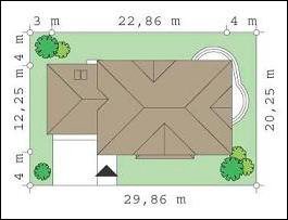 - Min. wymiary działki 29.86x20.25 m