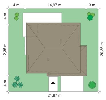 - Min. wymiary działki 22.97x20.35 m