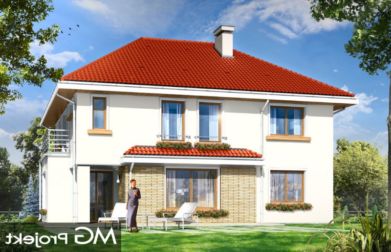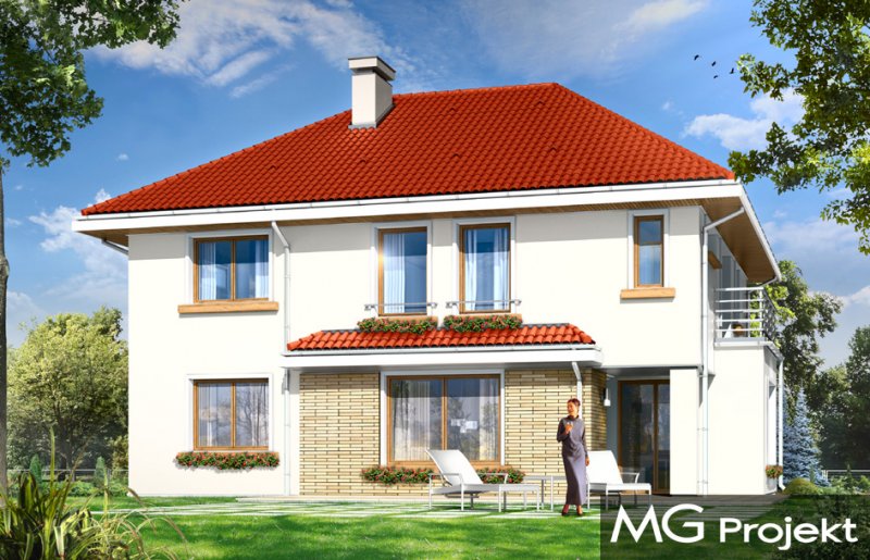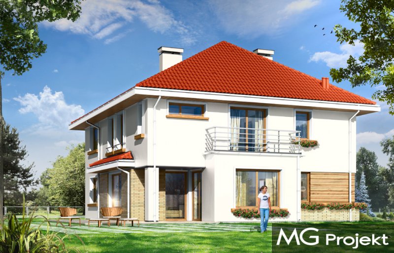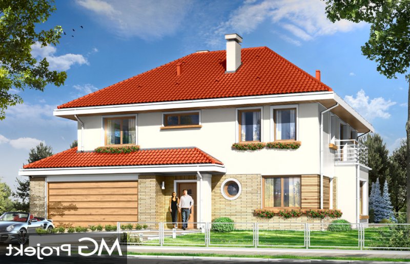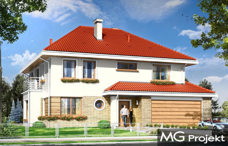 Orchidea to uroczy, piętrowy domek jednorodzinny, stworzony z myślą o cztero-pięcioosobowej rodzinie. Prostokątna bryła budynku przekryta jest czterospadowym dachem, a wykusze, daszki, oraz wystający poza obrys ścian garaż urozmaicają wygląd zewnętrzny domu. Dzięki dopracowanemu detalowi i właściwym proporcjom udało się podkreślić elegancję tej miejskiej willi, zachowując jednocześnie spokój, umiar i harmonię. Wnętrze domu zostało zdominowane przez otwartą przestrzeń dzienną na parterze, oraz pokoje sypialne na piętrze. Parter, to prócz dużego salonu z aneksem jadalnym, holem i półotwartą kuchnią, również obszerny przedsionek, garaż na dwa samochody, kotłownia, oraz dodatkowy pokój - na przykład gabinet. W projekcie na piętrze, udało się zaprojektować osobny apartament rodziców - z własną łazienką i dwiema garderobami, oraz trzy dodatkowe sypialnie z łazienką. Istnieje możliwość zaadaptowania strychu nad piętrem. Dostępna jest wersja odbicia lustrzanego projektu.