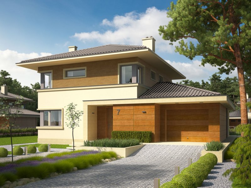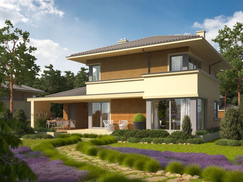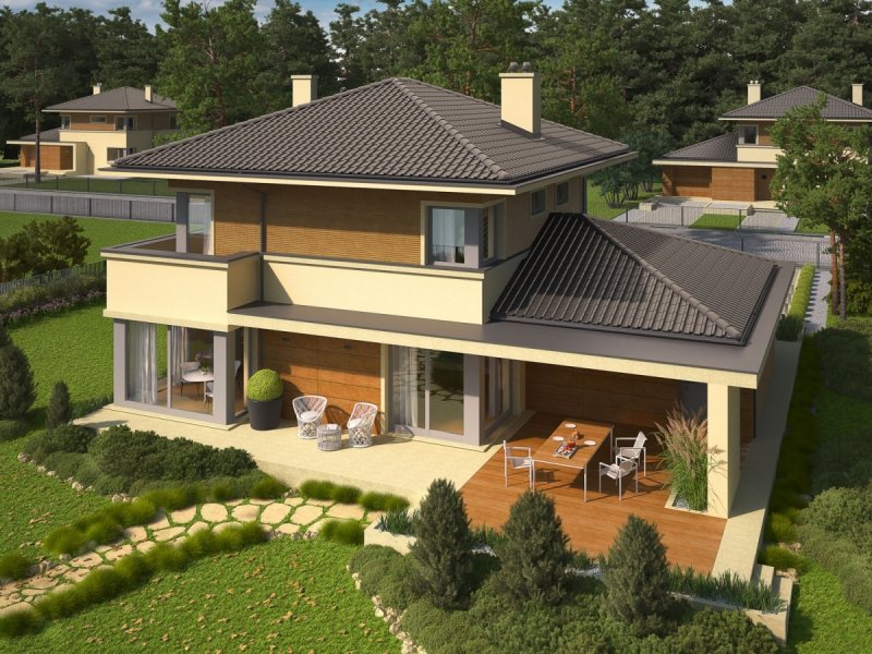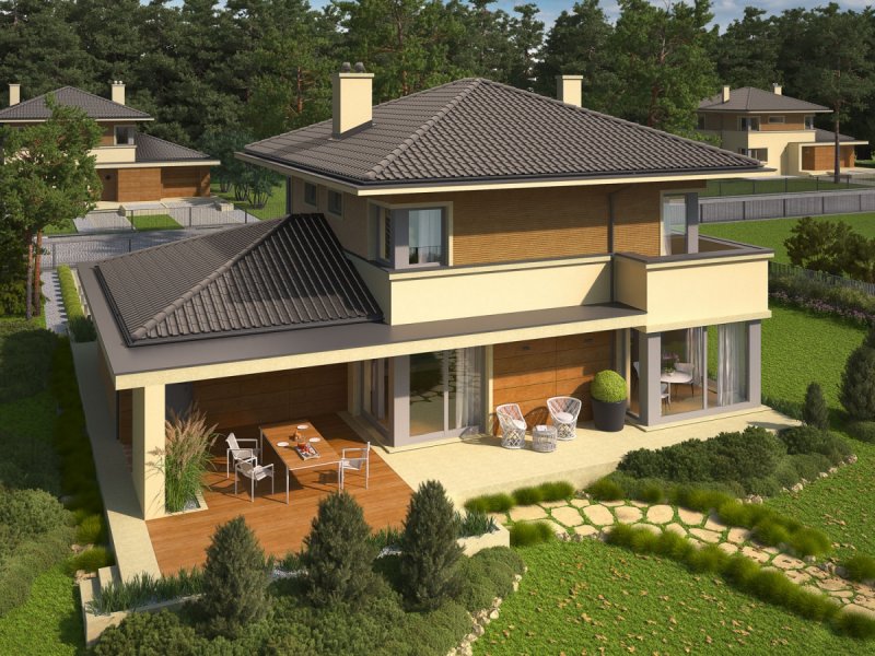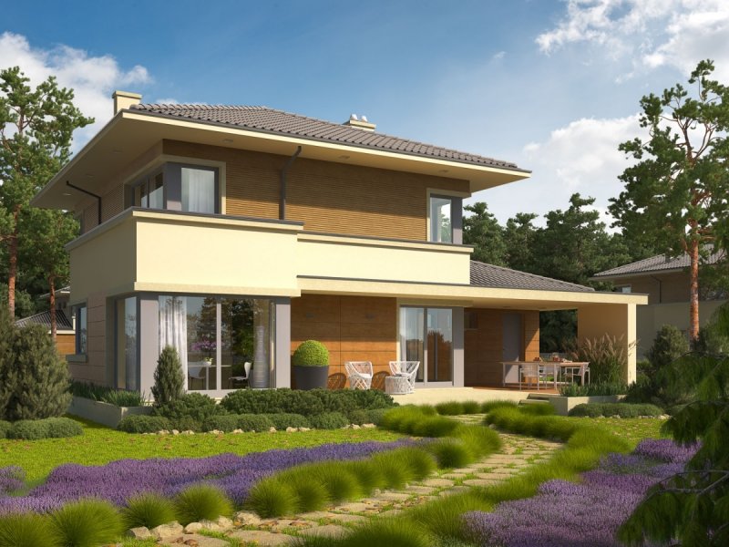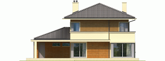 Dom piętrowy, niepodpiwniczony, z garażem jednostanowiskowym. Przeznaczony dla 3-4-osobowej rodziny. Strefa dzienna znajduje się na parterze, w jej skład wchodzą: przestronny salon z jadalnią oraz kuchnia z praktyczną spiżarnią. Dodatkowo zaplanowano również łazienkę oraz duże pomieszczenie gospodarcze dostępne z wiatrołapu oraz garażu. Na piętrze mieszczą się trzy duże sypialnie, w tym jedna z dostępem do garderoby i wyjściem na balkon, a także duża łazienka. Dom Rodrigo III G1 to propozycja dla inwestorów, którzy marzą o klimacie śródziemnomorskiej rezydencji w nowoczesnej szacie. Atrakcyjny wygląd zewnętrzny budynku akcentuje wysmakowana kompozycja elewacji, która łączy waniliową elegancję, chłód szarości oraz ciepły, przytulny urok drewna. Czytelny i perfekcyjnie rozplanowany układ funkcjonalny uzupełniają przestronne tarasy, które od wiosny do później jesieni tworzą wymarzoną aurę dla złaknionych relaksu na świeżym powietrzu. Atutem domu są duże przeszklenia, które zapraszają do wnętrz naturalne światło oraz kojącą, balsamiczną zieleń ogrodu – dzięki nim jadalnia oraz pokój dzienny są wypełnione imponującą porcją słonecznej energii, ciesząc domowników atmosferą nastrojowego ciepła. Rodrigo III G1 spełni oczekiwania miłośników intrygującego designu i sprawdzonych rozwiązań. Istnieje możliwość: - podpiwniczenia budynku - zbliźniaczenia