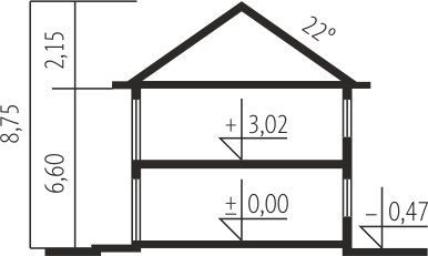 Dom zaprojektowany w technologii murowej ze stropem gęstożebrowym. Schody wewnętrzne drewniane. Dach o konstrukcji drewnianej pokryty dachówką ceramiczną Röben. Elewacje wykończono tynkiem mineralnym, okładziną drewnianą lub drewnopochodną. Cokoły kamienne lub wykończone tynkiem akrylowym. Stolarka okienna drewniana lub PCV.