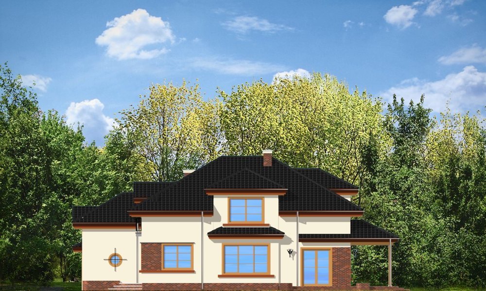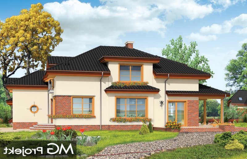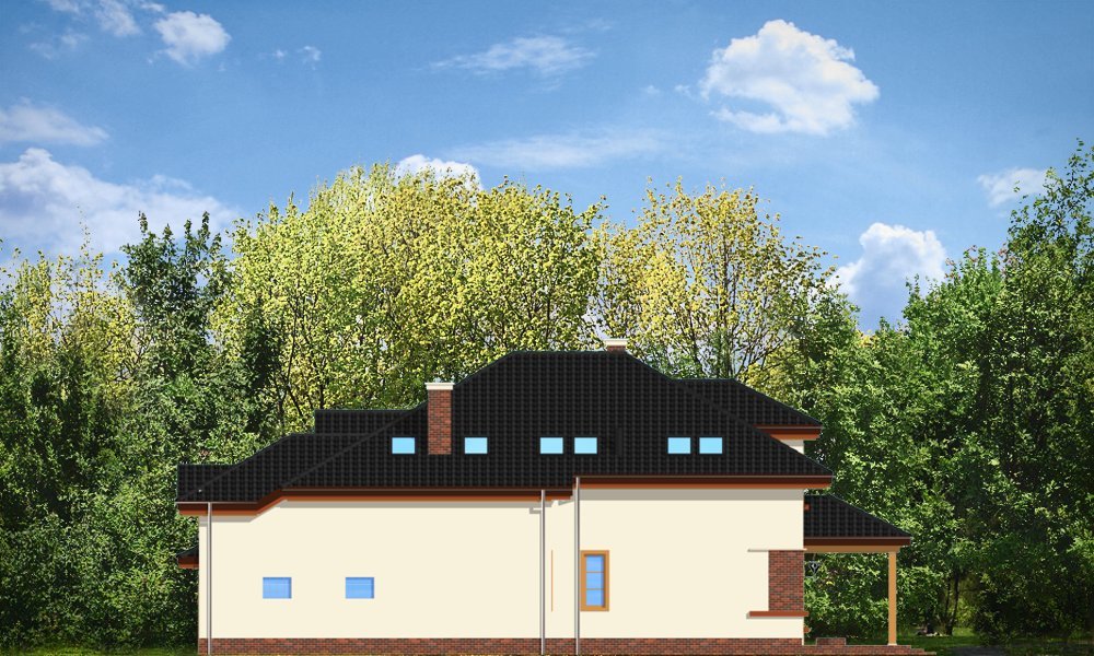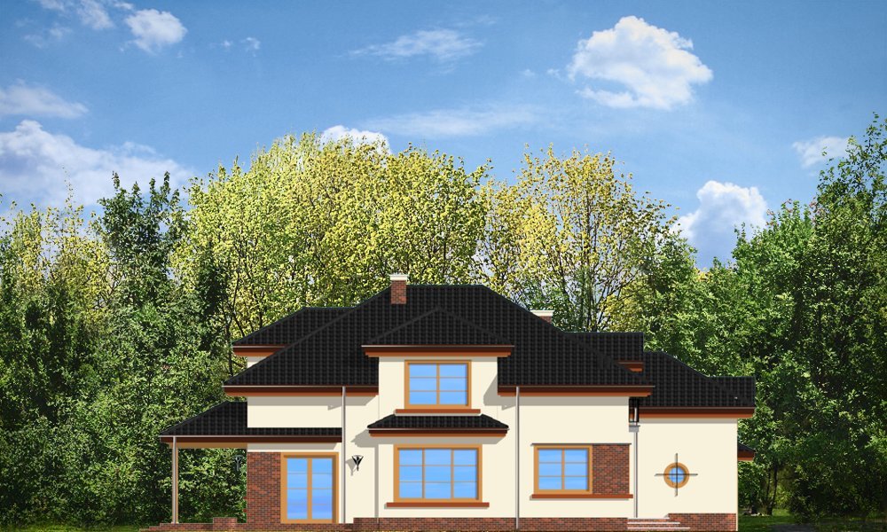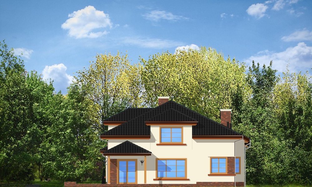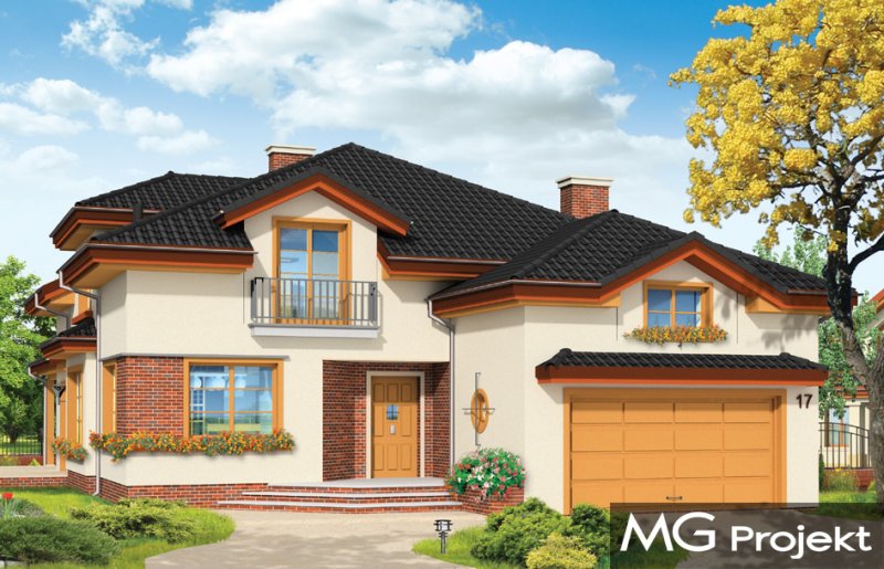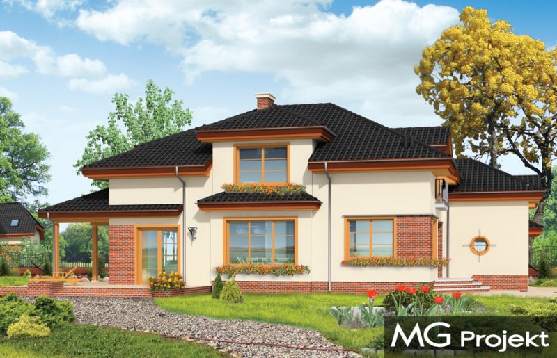 Rodzinny to idealny dom dla 4-5cioosobowej rodziny, parterowy z poddaszem. Poddasze ma bardzo wysokie ściany kolankowe, przez co dom sprawia wrażenie niemal budynku piętrowego, poprawia się też funkcjonalność pokoi na poddaszu. Architektura domu łączy tradycję i nowoczesność. Duże przeszklenia okien salonu i jadalni łączą wnętrze domu z ogrodem. Dom można wybudować zarówno na działce z ogrodem z tyłu jak i z boku. Pracownia dysponuje projektem w odbiciu lustrzanym.