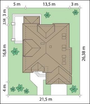 - Min. wymiary działki 21.51x21.50 m